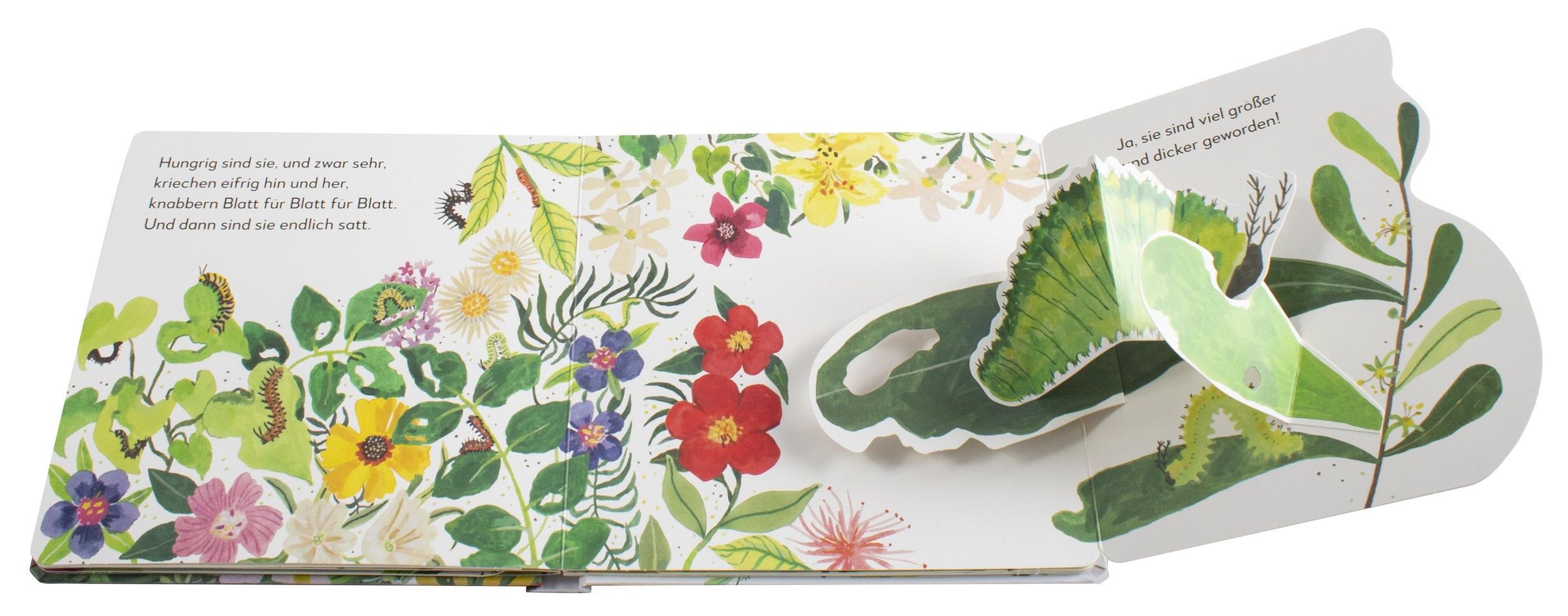 Die Schmetterlinge fliegen durch das kunterbunte Blütenmeer und bald klebt hier und da ein Ei. Was hat das zu bedeuten? Mit diesem Buch kommen schon Kleinkinder ab 2 der Natur richtig nah und können mit den großen Pop-ups unter den Klappen alles ganz genau entdecken. So weckt das Pappbilderbuch spielerisch das Interesse für Naturthemen und zeigt Kindern eines der faszinierendsten Schauspiele unserer heimischen Wiesen und Wälder.