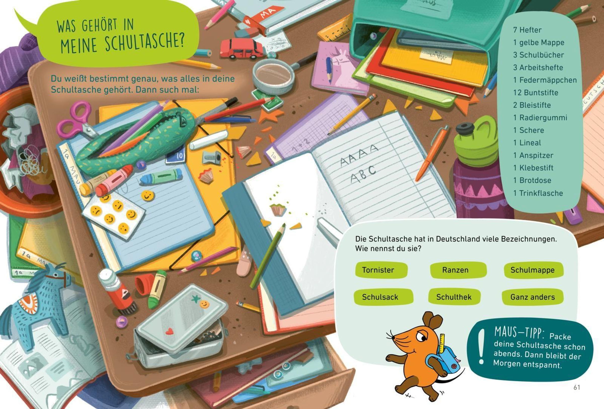 Was gehört in die Schultasche? Wohnen Lehrer*innen in der Schule? Warum fangen Zähne an zu wackeln? Zum Schulanfang haben Kinder ganz schön viele Fragen - und stellen sie am liebsten der Maus. Denn sie weiß nicht nur, wieso es am ersten Schultag Zuckertüten gibt, sondern auch welche Spiele in der Pause am meisten Spaß machen. Die bunte Mischung aus Information, Spielen, Experimenten und Bastelideen hilft Unsicherheiten zu überwinden und erleichtert den Start ins aufregende Schulleben.