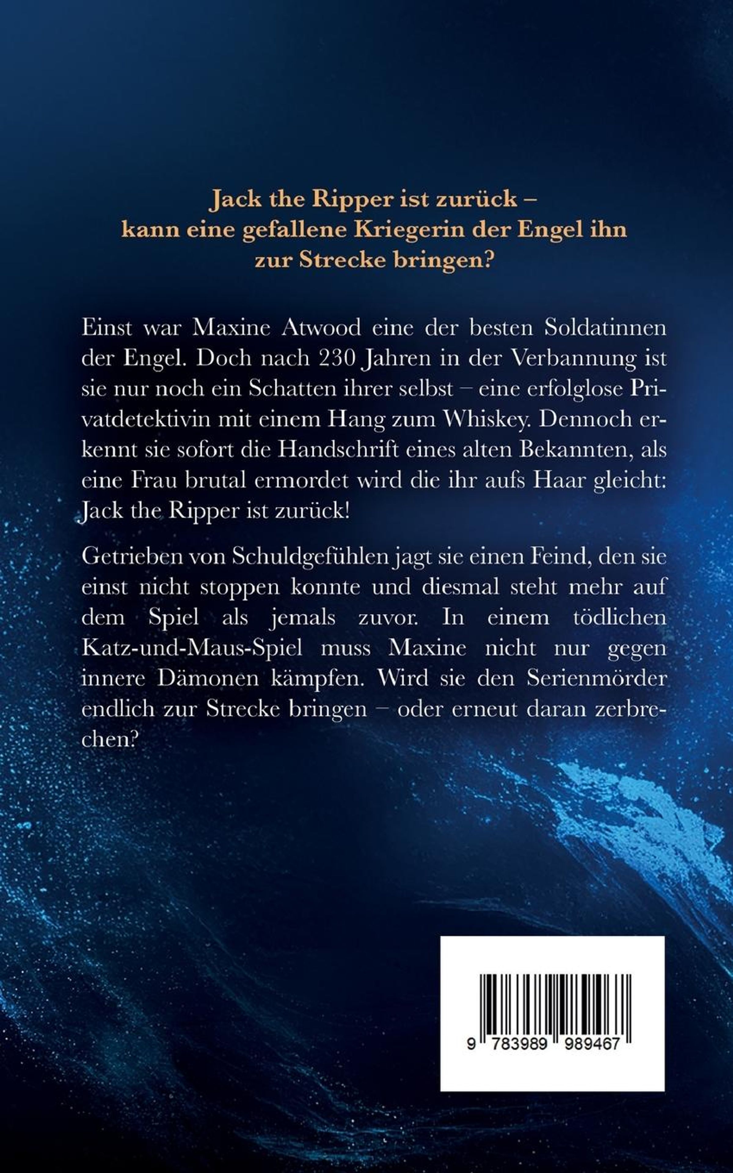 Einst war Maxine Atwood eine der besten Soldatinnen der Engel. Doch nach 230 Jahren in der Verbannung ist sie nur noch ein Schatten ihrer selbst -- eine erfolglose Privatdetektivin mit einem Hang zum Whiskey. Dennoch erkennt sie sofort die Handschrift eines alten Bekannten, als eine Frau brutal ermordet wird die ihr aufs Haar gleicht: Jack the Ripper ist zurück!