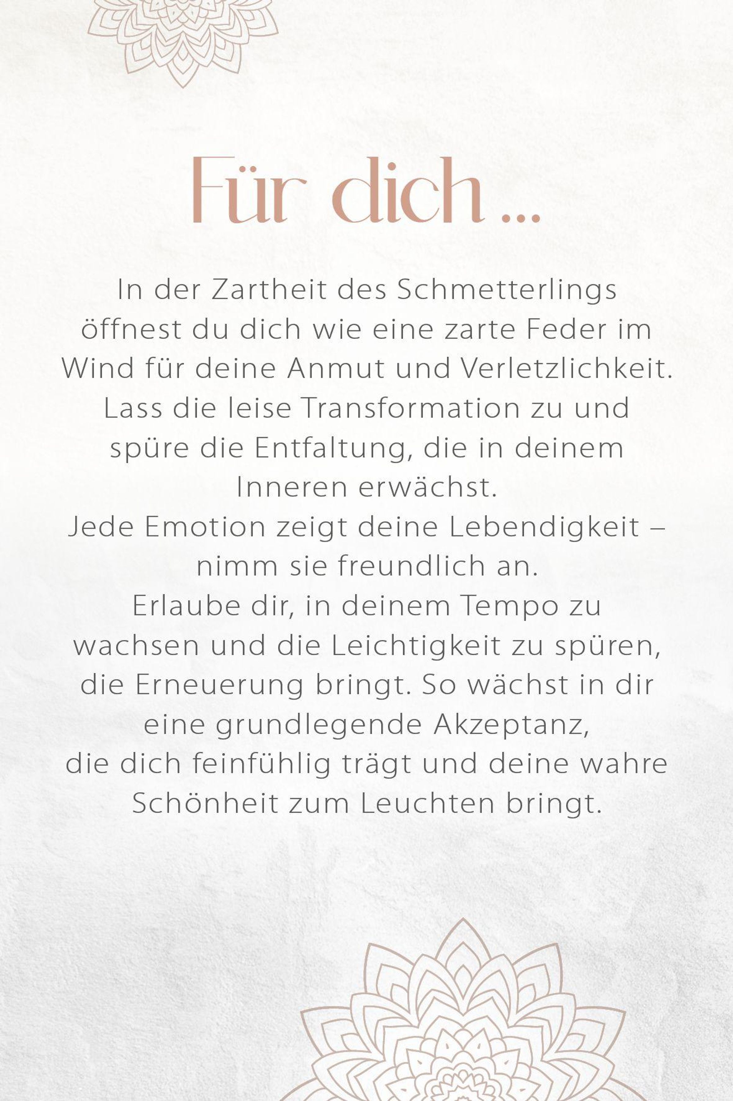 Yin Yoga ist weit mehr als nur eine Abfolge von Haltungen; es ist eine zärtliche Einladung an deine Seele, sich ganz hinzugeben. In den passiven Dehnungen, die oft Minuten lang gehalten werden, findest du die Kraft, den gegenwärtigen Moment nicht nur zu umarmen, sondern ihn tief in deinem Inneren zu fühlen. Hier öffnet sich ein heiliger Raum für tiefgreifende emotionale Erfahrungen und innere Wandlung: Deine Gefühle dürfen fließen wie ein sanfter Fluss, dein Herz findet zur Ruhe, und deine Seele atmet tief und befreit auf. Jede Karte dieses einzigartigen Sets enthüllt dir nicht nur eine sanfte Yin-Yoga-Position, sondern auch die poetische Essenz ihrer geistigen, emotionalen und spirituellen Dimension. Diese Impulse sind wie kleine Lichtfunken, die dich während deiner Praxis noch tiefer in die Haltungen und vor allem - tiefer zu dir selbst tragen. So wird jede Yin-Yoga-Einheit zu einer zutiefst erfüllenden, magischen Reise in dein Innerstes.