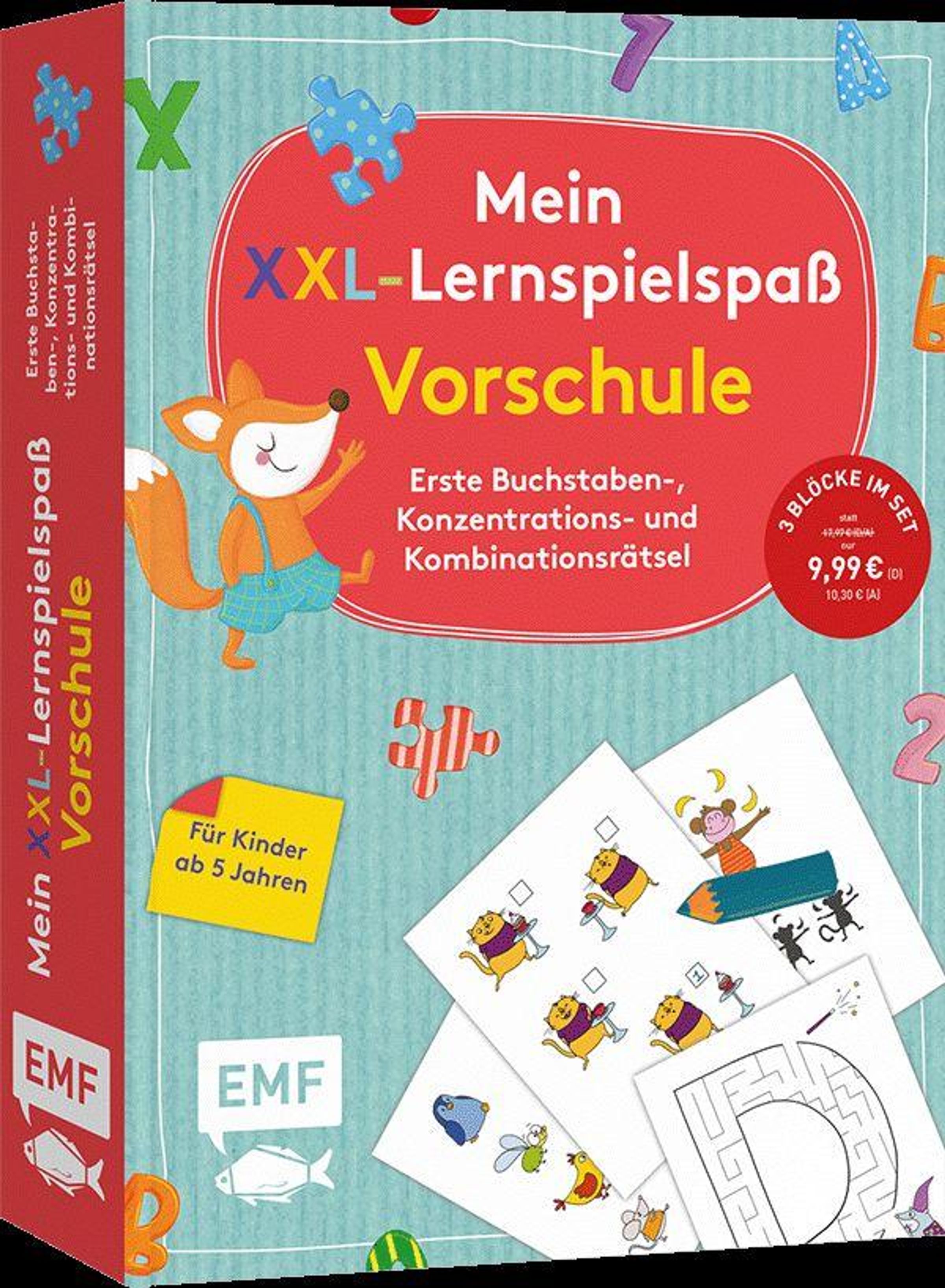 Mit der Vorschule beginnt auch die Vorfreude auf die Schule ! Diese drei Lernspielblöcke bieten die ideale Beschäftigung und Vorbereitung für das lange Warten bis zur 1. Klasse . Spielerisch wird das Vorschulkind an erste B uchstaben, Konzentrations- und Denksportaufgabenherangeführt. Alle Seiten können herausgetrennt werden, die Lösungen befinden sich jeweils auf den Rückseiten. Die Aufgaben und Übungen wurden von Pädagogen entwickelt.