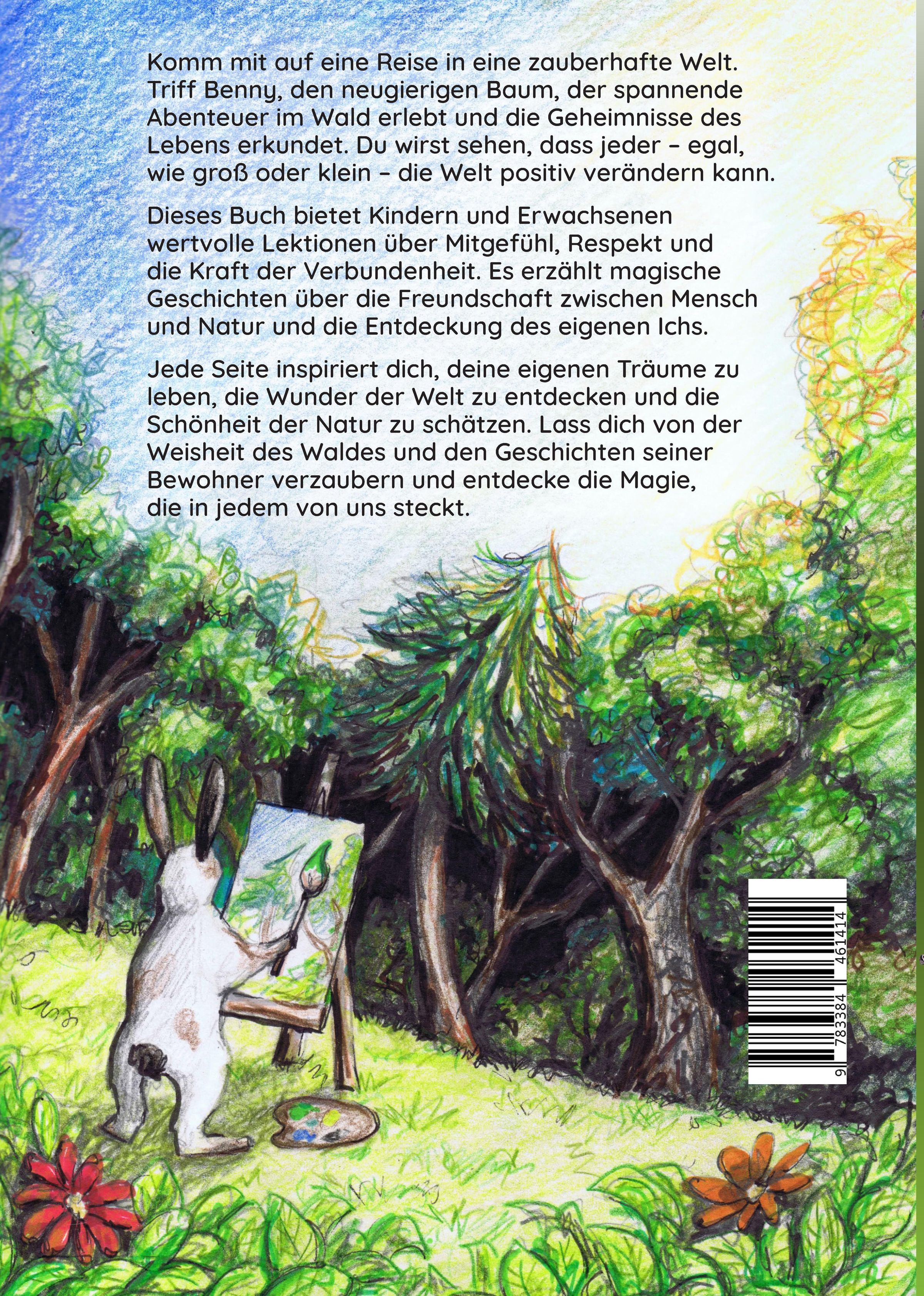 Komm mit auf eine Reise in eine zauberhafte Welt. Triff Benny, den neugierigen Baum, der spannende Abenteuer im Wald erlebt und die Geheimnisse des Lebens erkundet. Du wirst sehen, dass jeder - egal, wie groß oder klein - die Welt positiv verändern kann. Dieses Buch bietet Kindern und Erwachsenen wertvolle Lektionen über Mitgefühl, Respekt und die Kraft der Verbundenheit. Es erzählt magische Geschichten über die Freundschaft zwischen Mensch und Natur und die Entdeckung des eigenen Ichs. Jede Seite inspiriert dich, deine eigenen Träume zu leben, die Wunder der Welt zu entdecken und die Schönheit der Natur zu schätzen. Lass dich von der Weisheit des Waldes und den Geschichten seiner Bewohner verzaubern und entdecke die Magie, die in jedem von uns steckt.