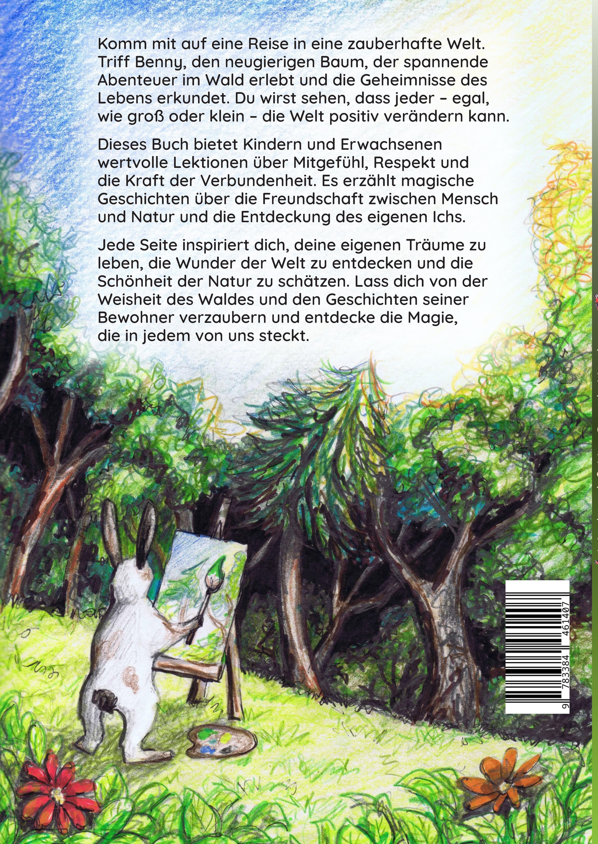 Komm mit auf eine Reise in eine zauberhafte Welt. Triff Benny, den neugierigen Baum, der spannende Abenteuer im Wald erlebt und die Geheimnisse des Lebens erkundet. Du wirst sehen, dass jeder - egal, wie groß oder klein - die Welt positiv verändern kann. Dieses Buch bietet Kindern und Erwachsenen wertvolle Lektionen über Mitgefühl, Respekt und die Kraft der Verbundenheit. Es erzählt magische Geschichten über die Freundschaft zwischen Mensch und Natur und die Entdeckung des eigenen Ichs. Jede Seite inspiriert dich, deine eigenen Träume zu leben, die Wunder der Welt zu entdecken und die Schönheit der Natur zu schätzen. Lass dich von der Weisheit des Waldes und den Geschichten seiner Bewohner verzaubern und entdecke die Magie, die in jedem von uns steckt.