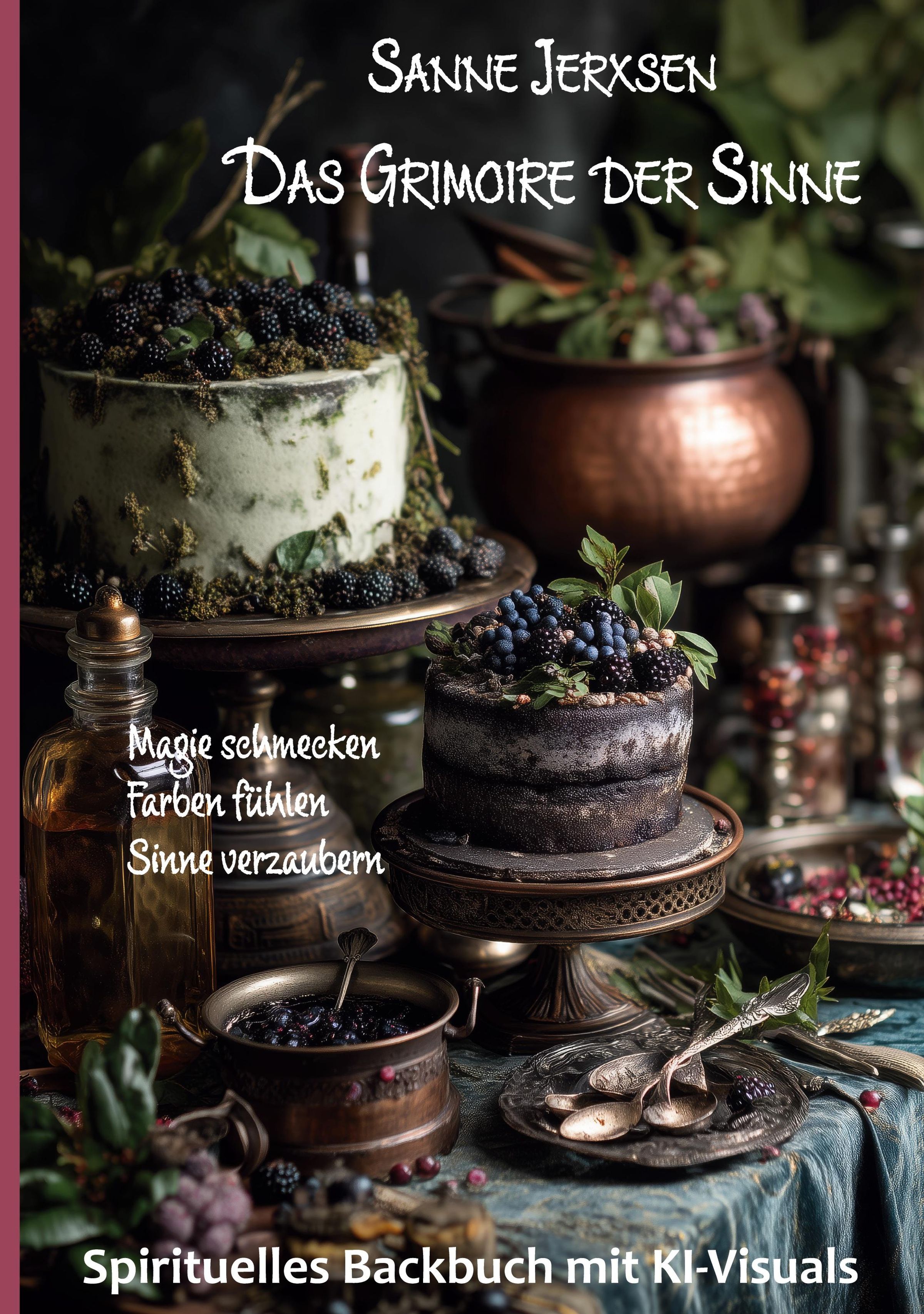 "Sanne Jerxsen: Das Grimoire der Sinne. Magie schmecken, Farben fühlen, Sinne verzaubern. Spirituelles Backbuch mit KI-Visuals.", Buch