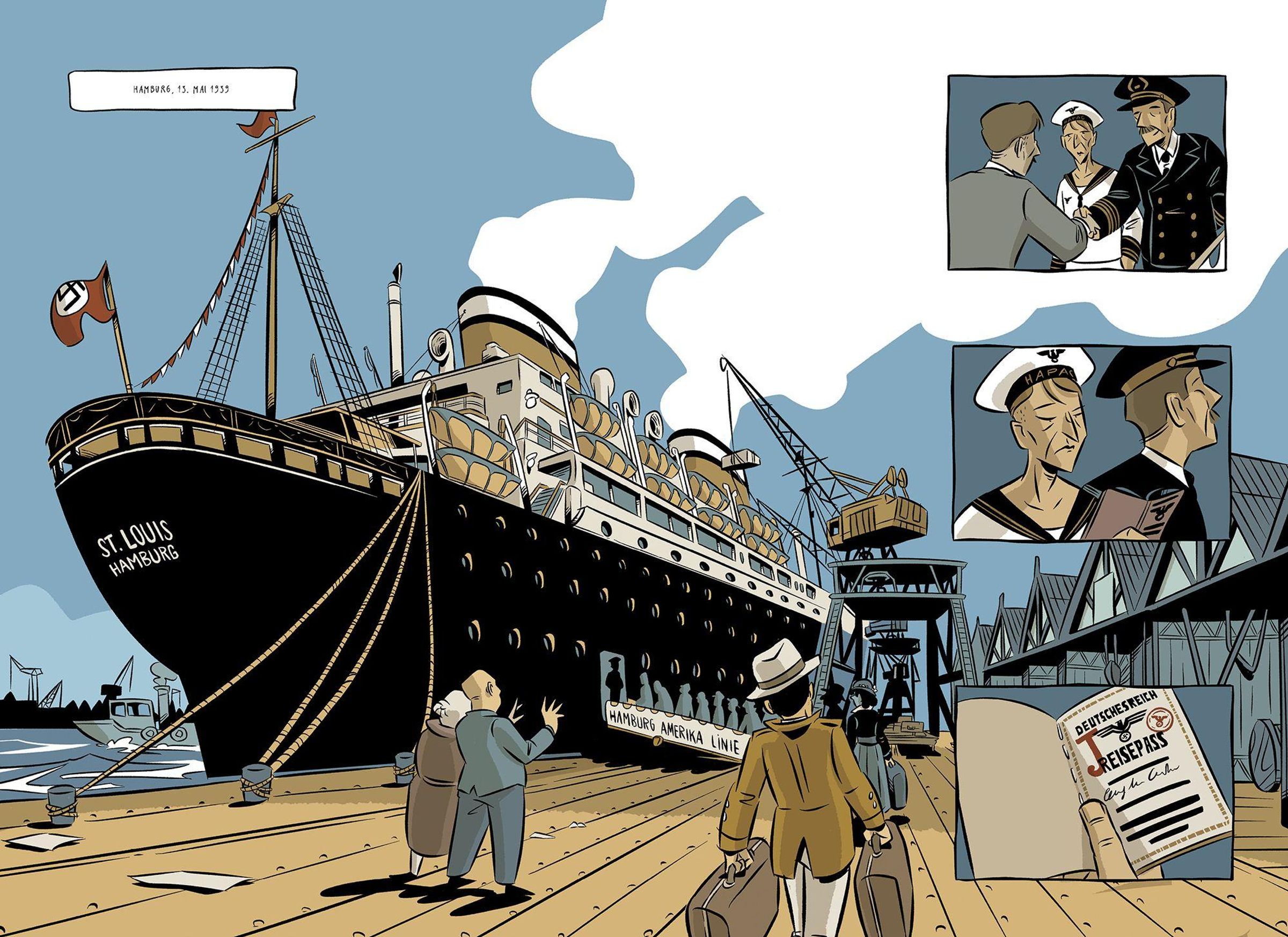 937 jüdische Passagiere verlassen mit der St. Louis den Hamburger Hafen - in der Hoffnung, in Kuba Zuflucht zu finden. Doch das Land weist sie ab. Ebenso die USA und Kanada. Kapitän Gustav Schröder setzt alles daran, einen sicheren Hafen zu finden. Doch wohin, wenn niemand sie aufnehmen will? Diese eindringliche Graphic Novel erzählt die wahre Geschichte von Flucht, Mut und Menschlichkeit: atmosphärisch, historisch fundiert und bewegend. Mit einem Zeitzeugeninterview eines Überlebenden und einem Vorwort des Shoah-Museums in Rom. Ein starkes Stück Erinnerungskultur, das zeigt, was Zivilcourage bedeutet - damals wie heute. Und warum es so wichtig ist hinzusehen.