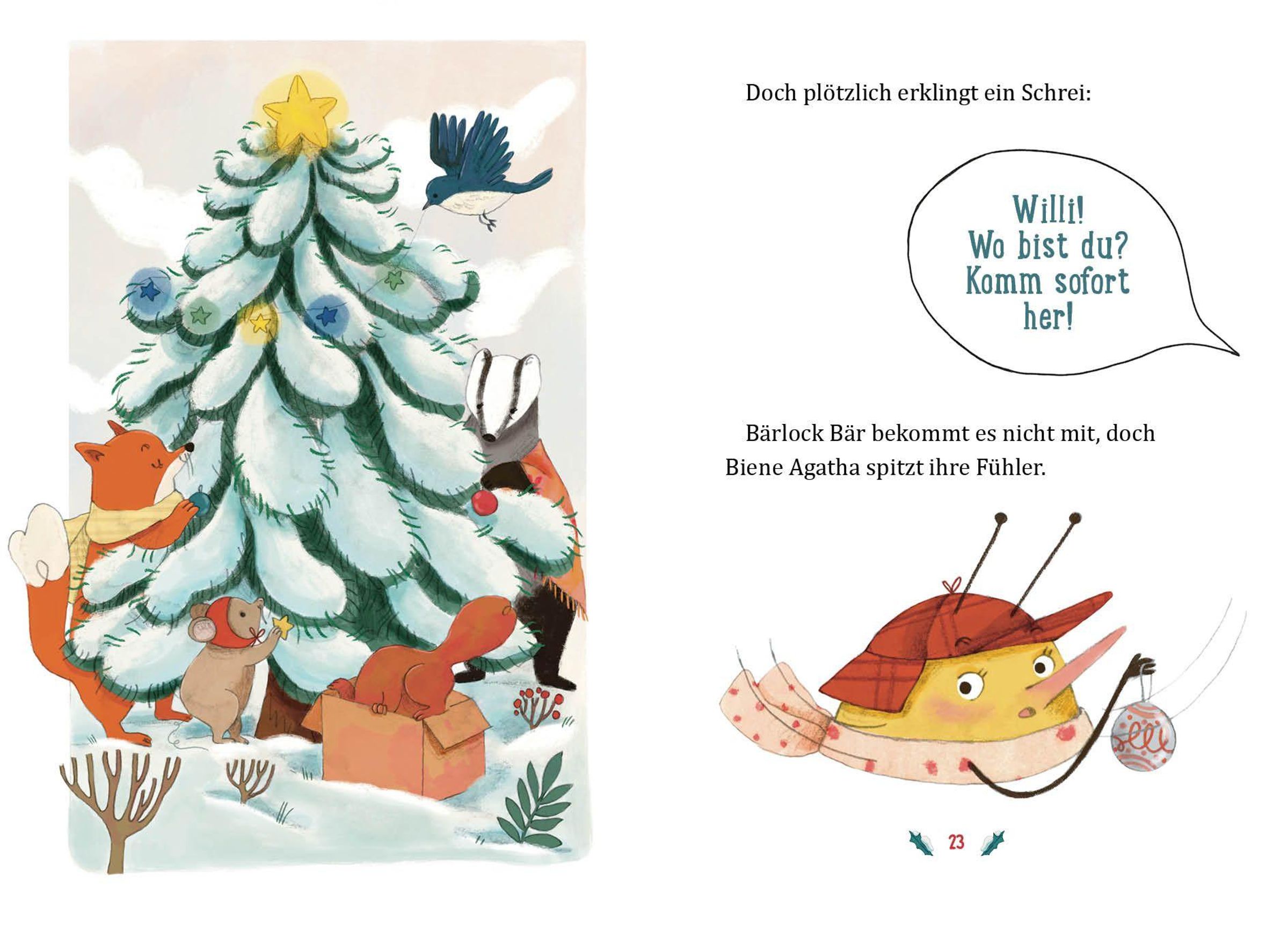 Es ist Winter und im Wald der Tanzenden Birke freuen sich alle Tiere darauf, Heiligabend unter der Alten Tanne zu feiern. Doch plötzlich ist Waschbärkind Willi verschwunden! Die Jahreszeiten-Detektive machen sich sofort auf die Suche. Wenn Bärlock nur nicht so müde wäre!