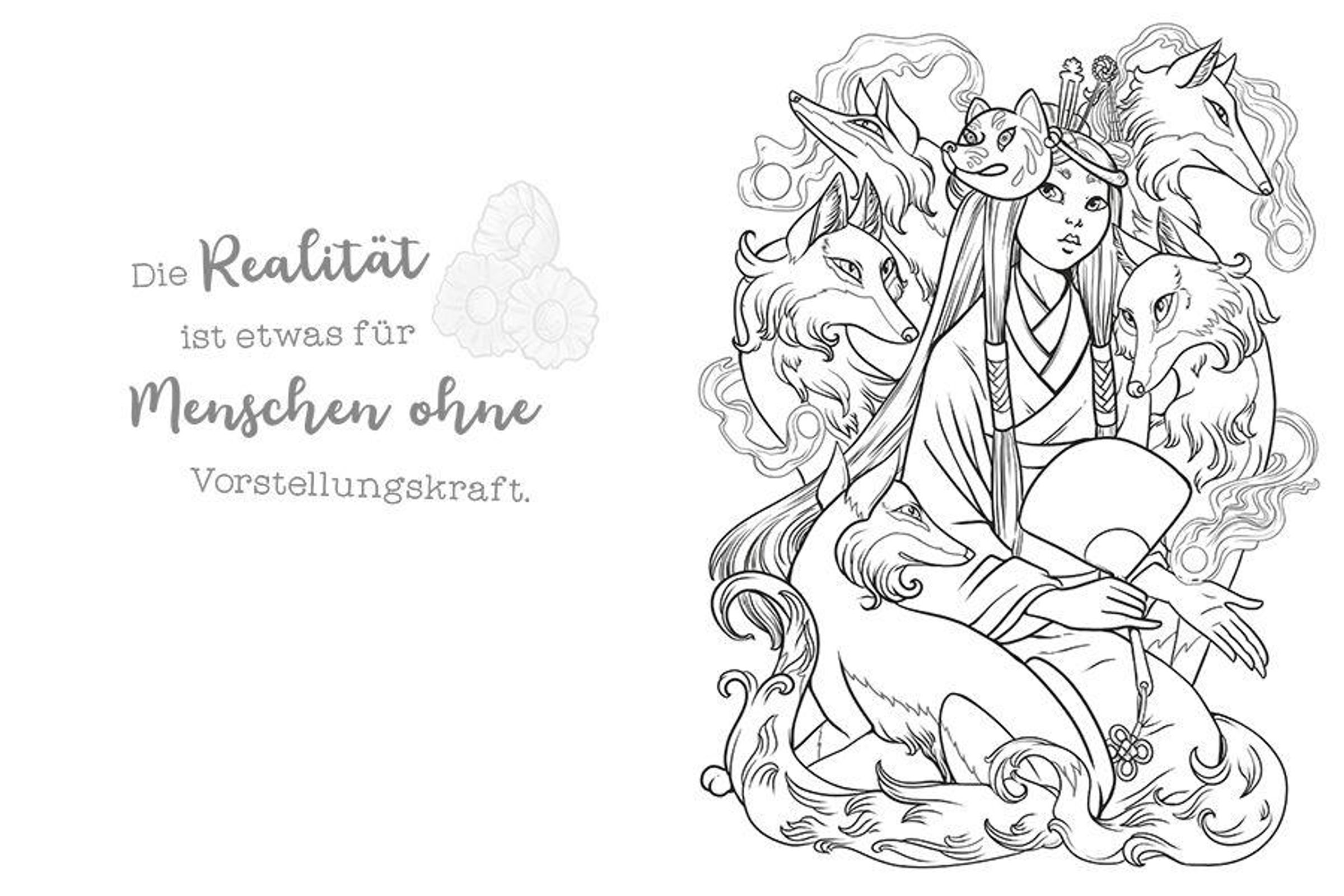 Zeichenbegeisterte Kinder können mit diesem Ausmalbuch ihre Fantasie voll entfalten. Über 40 liebevoll gestaltete Motive warten darauf, mit Farbe zum Leben erweckt zu werden. Die detailreichen Illustrationen zeigen Mädchen und Frauen in traumhaften Fantasy-Szenen mit Fabelwesen und mystischen Landschaften. Die Bilder werden von inspirierenden und humorvollen Sprüchen begleitet, die die Kreativität anregen und ein Lächeln ins Gesicht zaubern. Perfekt für kreative Auszeiten