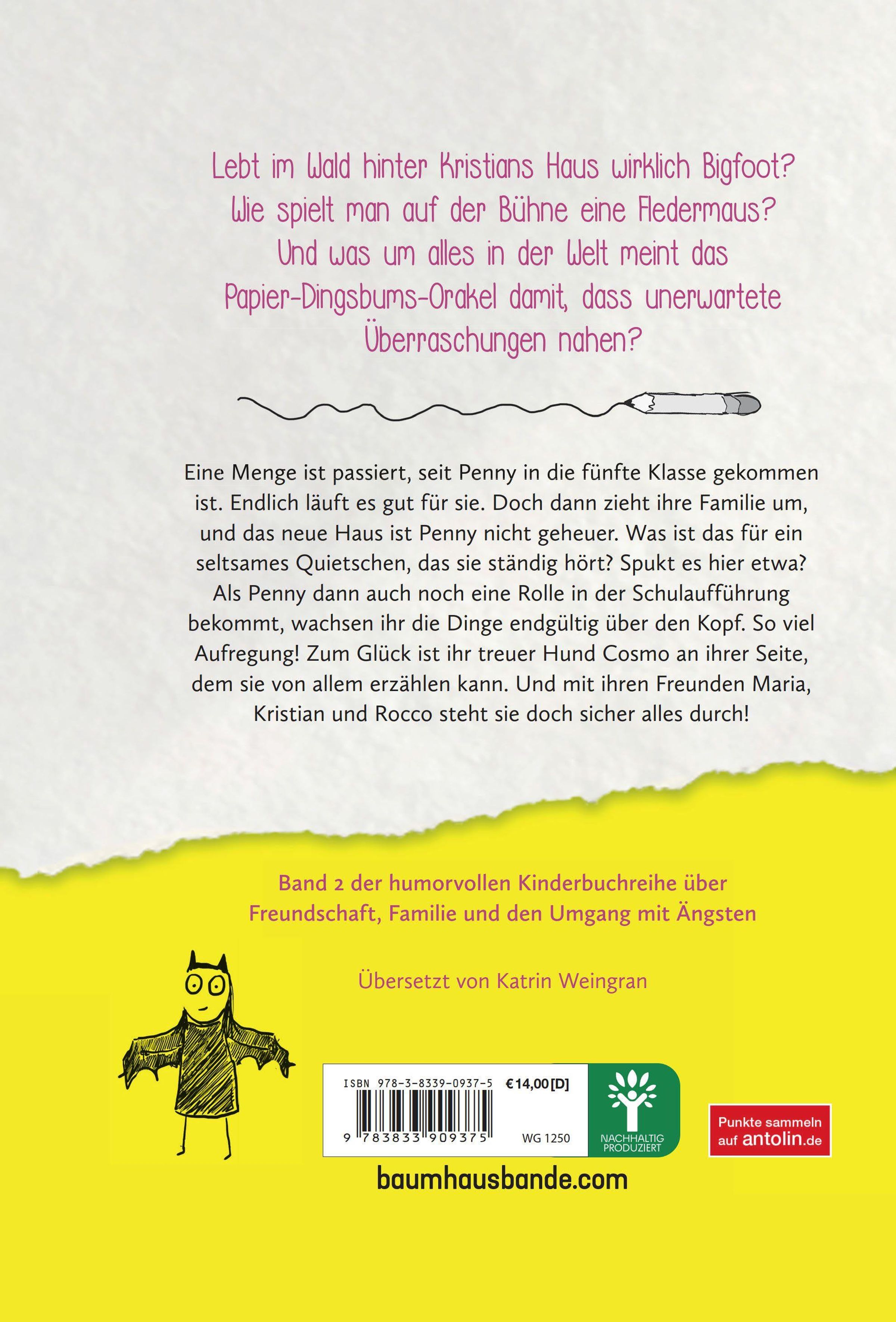 Eine Menge ist passiert, seit Penny in die fünfte Klasse gekommen ist. Endlich läuft es gut für sie. Doch dann zieht ihre Familie um, und das neue Haus ist Penny nicht geheuer. Was ist das für ein seltsames Quietschen, das sie ständig hört? Spukt es hier etwa? Als Penny dann auch noch eine Rolle in der Schulaufführung bekommt, wachsen ihr die Dinge endgültig über den Kopf. So viel Aufregung! Zum Glück ist ihr treuer Hund Cosmo an ihrer Seite, dem sie von allem erzählen kann. Und mit ihren Freunden Maria, Kristian und Rocco steht sie doch sicher alles durch!