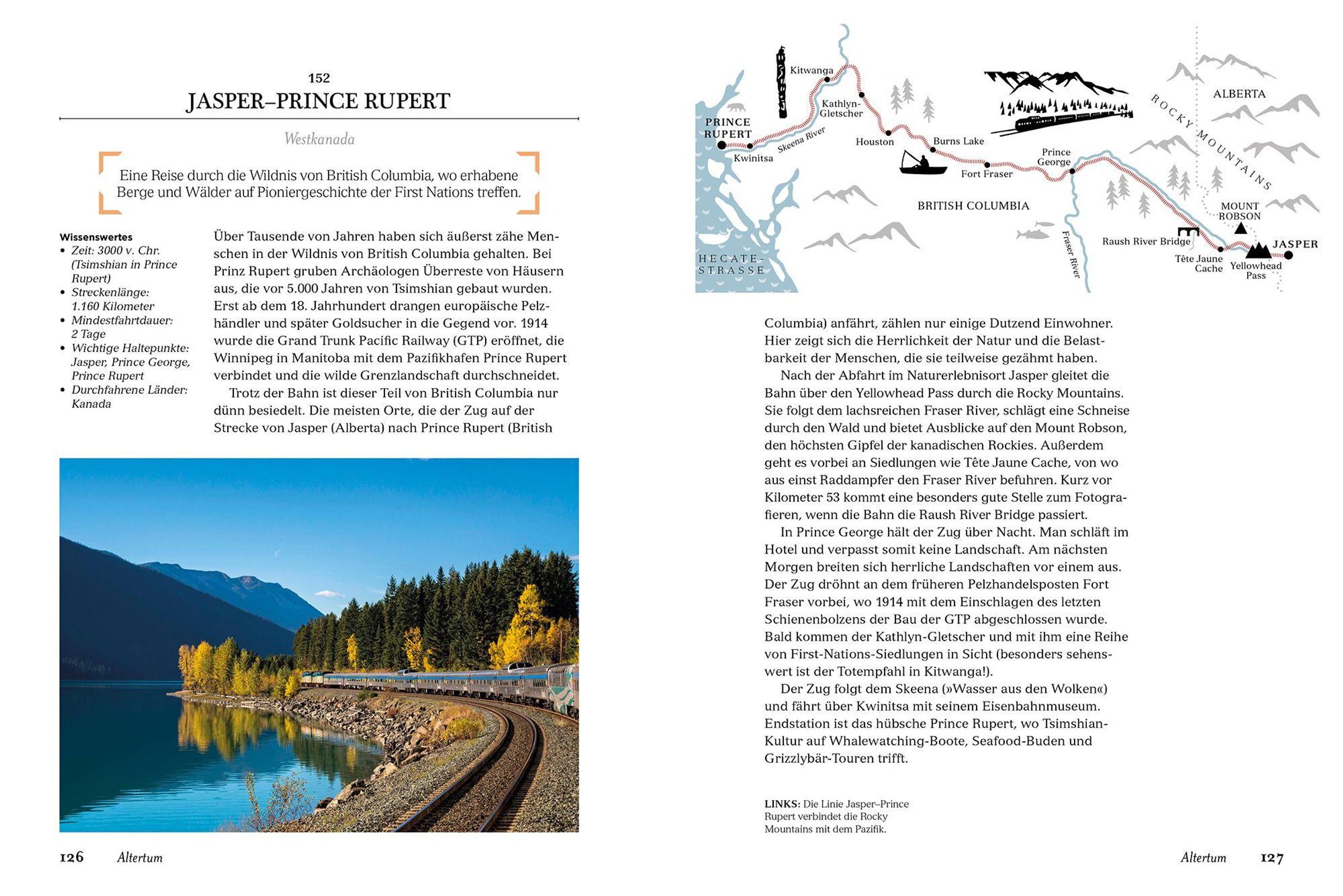 Mit dabei: der Glacier Express, der Blue Train, die Lhasa-Bahn, die Eiserne Seidenstraße - und eindrucksvolle Nachtzugverbindungen. Jede Route enthält Infos zu Fahrtdauer, Haltepunkten, Streckenverlauf und Sehenswürdigkeiten entlang der Linie. Ob kurzes Bahnabenteuer oder große Reise auf Gleisen - ein Buch zum Schmökern, Staunen und Losreisen.