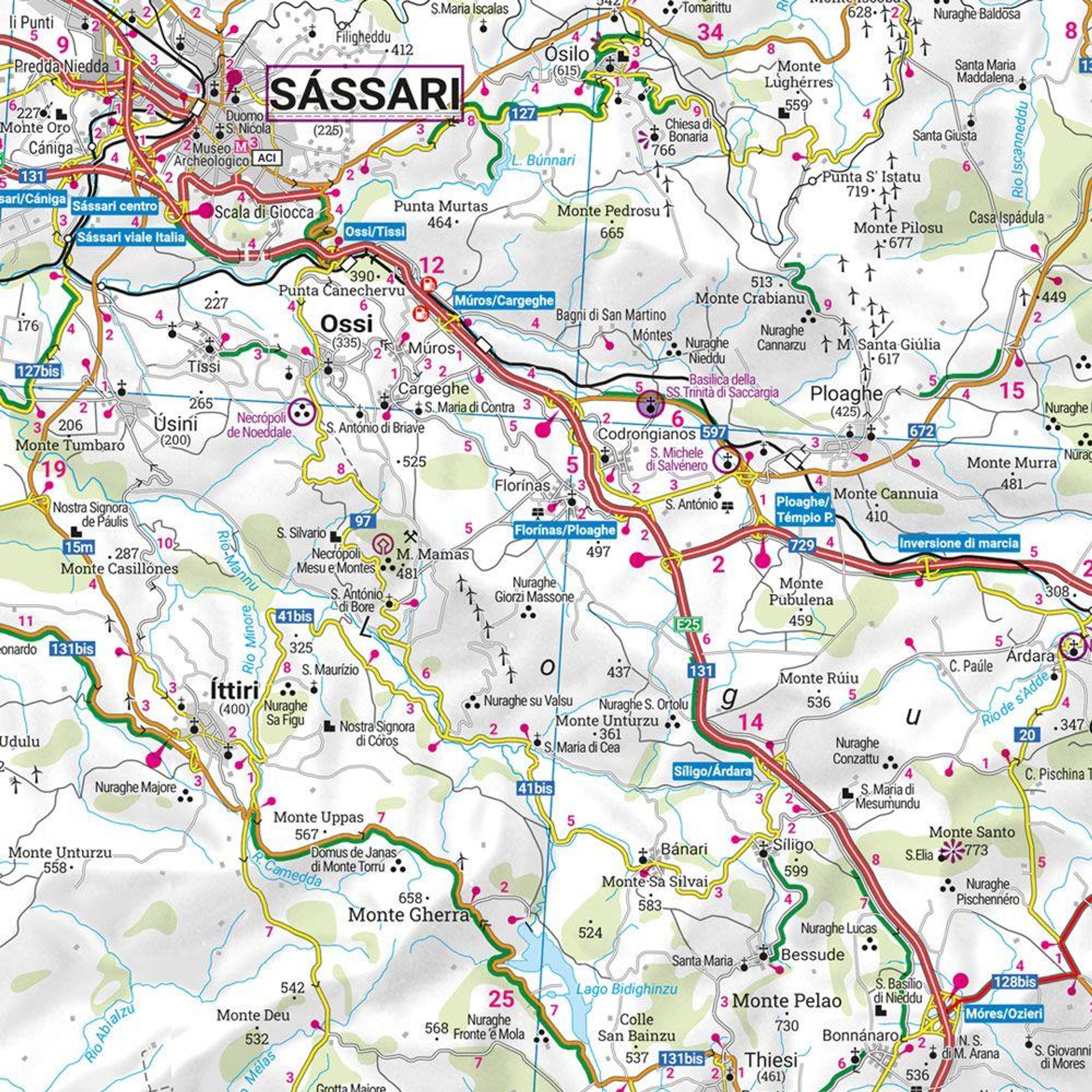 Die Straßen- und Freizeitkarte Sardinien im Maßstab 1: 150.000 enthält viele nützliche Informationen für einen Urlaub auf der Mittelmeerinsel. Das dichte Straßennetz ist exakt abgebildet, landschaftlich schöne Straßen sind farblich hervorgehoben und viele Ausflugsziele sind in der Karte eingezeichnet.