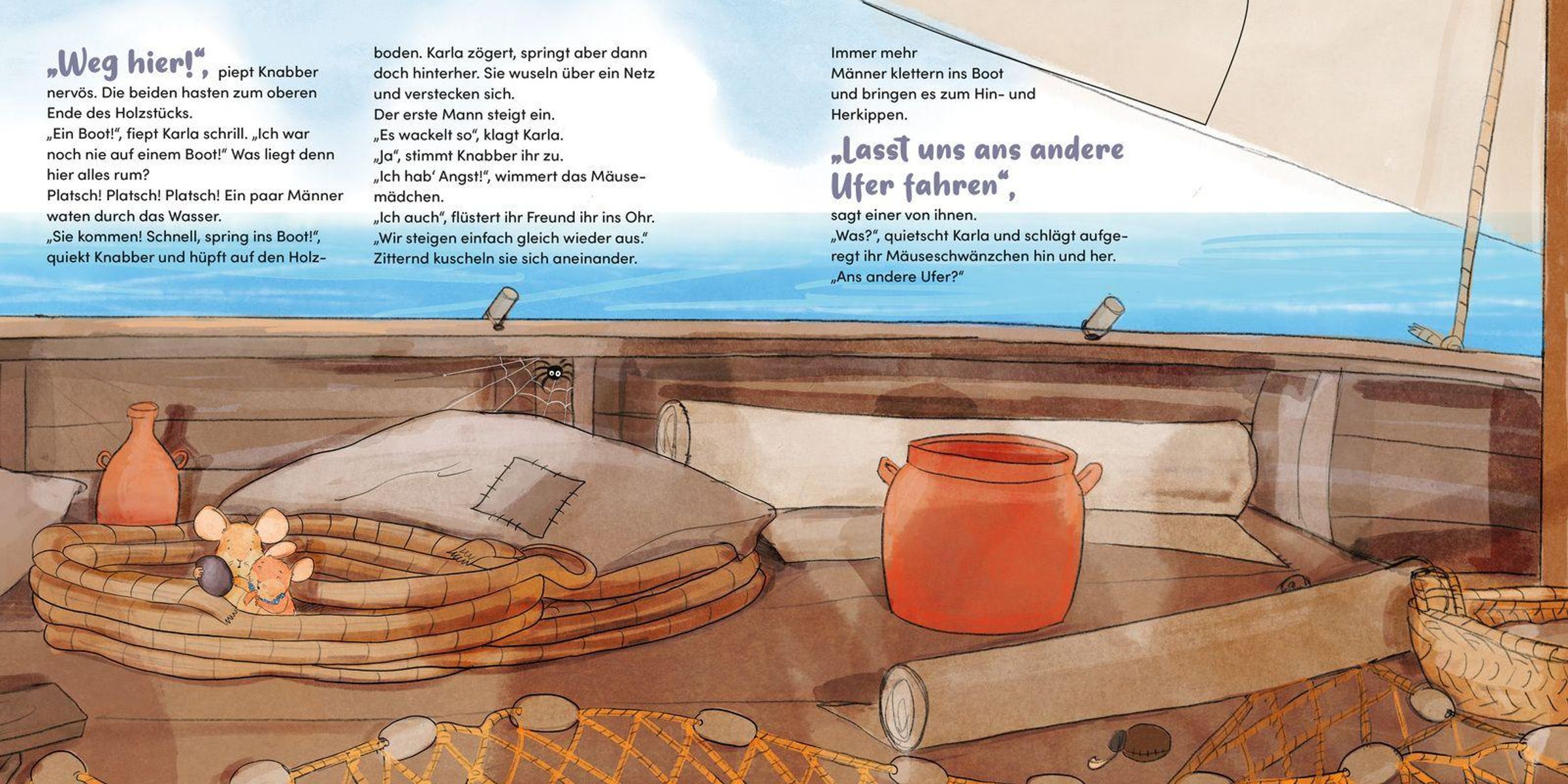 Die Mäuse Karla und Knabber erleben hautnah mit, wie Jesus den Sturm stillt - und zeigen Kindern auf liebevolle Weise: Auch wenn es um uns tobt, dürfen wir wissen, dass Jesus bei uns ist. Aus der kindgerechten Sicht der beiden Mäuse wird die biblische Geschichte lebendig, nahbar und spannend erzählt. So lernen Kinder: Angst ist okay - aber wir sind nicht allein mit diesem Gefühl. Denn Jesus ist größer als alles, was uns Angst machen kann.