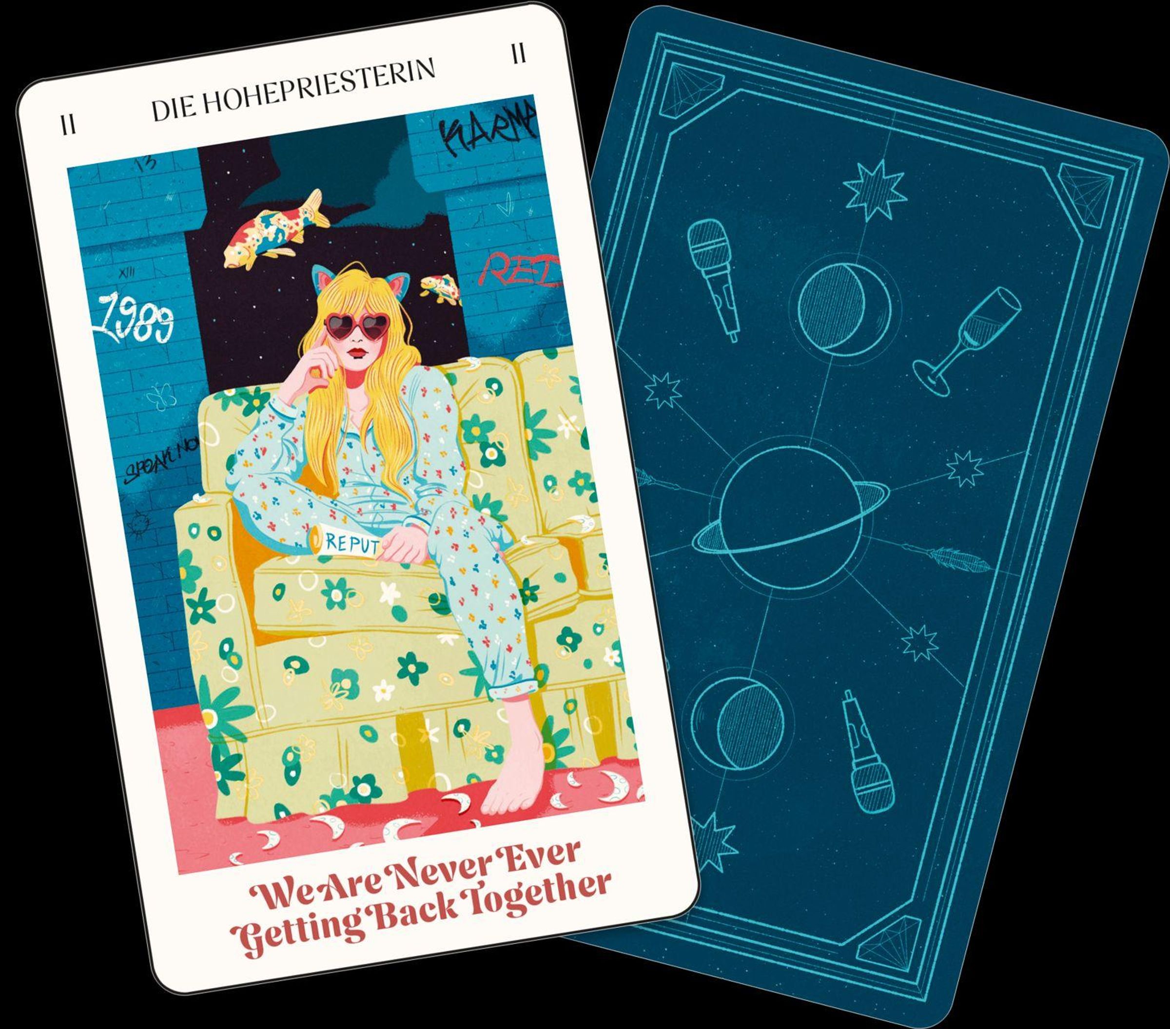 So verbindet dieses Kartendeck die Erkenntnisse einer Tarotlesung mit der Emotion eines Taylor-Swift-Songs: Entdecke die beruhigende Mäßigkeit-Karte, die nahelegt, 'You Need To Calm Down', die Liebenden-Karte, die hilft, deine eigene 'Love Story' zu verstehen, oder die Magier-Karte, die dich daran erinnert, dass es wirklich in deiner Macht liegt, 'The Prophecy' zu ändern.