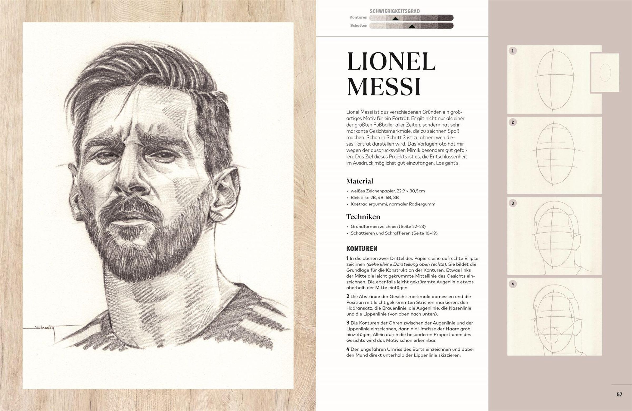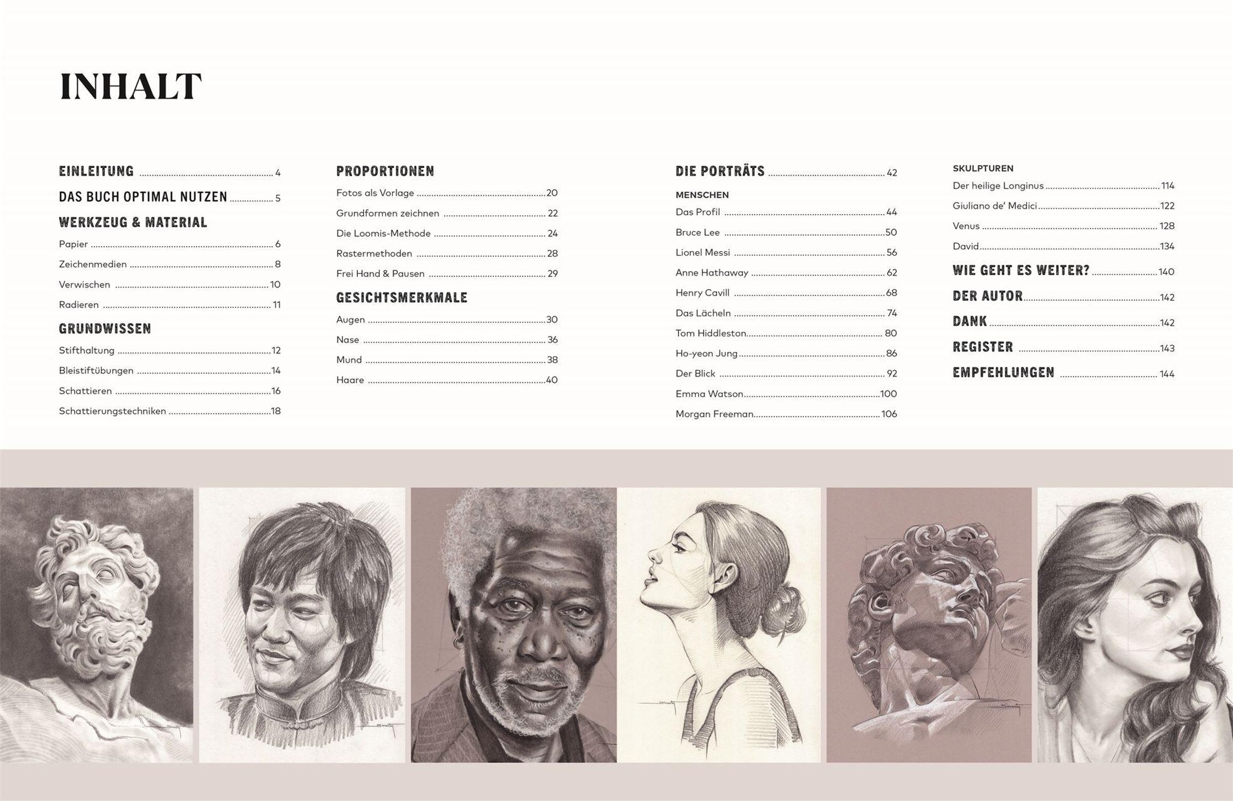 DasZeichnen von Gesichtern empfinden viele Zeichner*innen als schwierig - doch das muss nicht sein! Dieser umfassende Leitfaden nimmt die Unsicherheit beim Porträt zeichnen . Anhand von Vorlagen entstehen Schritt für Schritt aus einfachen Formen selbst gezeichnete Porträts . Der anschauliche Guide deckt alles ab, was man für den Einstieg insGesichter zeichnen braucht: Von der Haltung des Stifts bis hin zu Skizzier- und Schattierungstechniken mit Graphit und Kohle. Hinzu kommen15 ausführliche Anleitungen für Porträts bekannter Personen und Skulpturen. Das leicht verständliche Handbuch unterstützt alle Hobbykünstler*innen dabei, ihr künstlerisches Potenzial voll zu entfalten. Hier wird Porträts zeichnen einfach erlernbar!