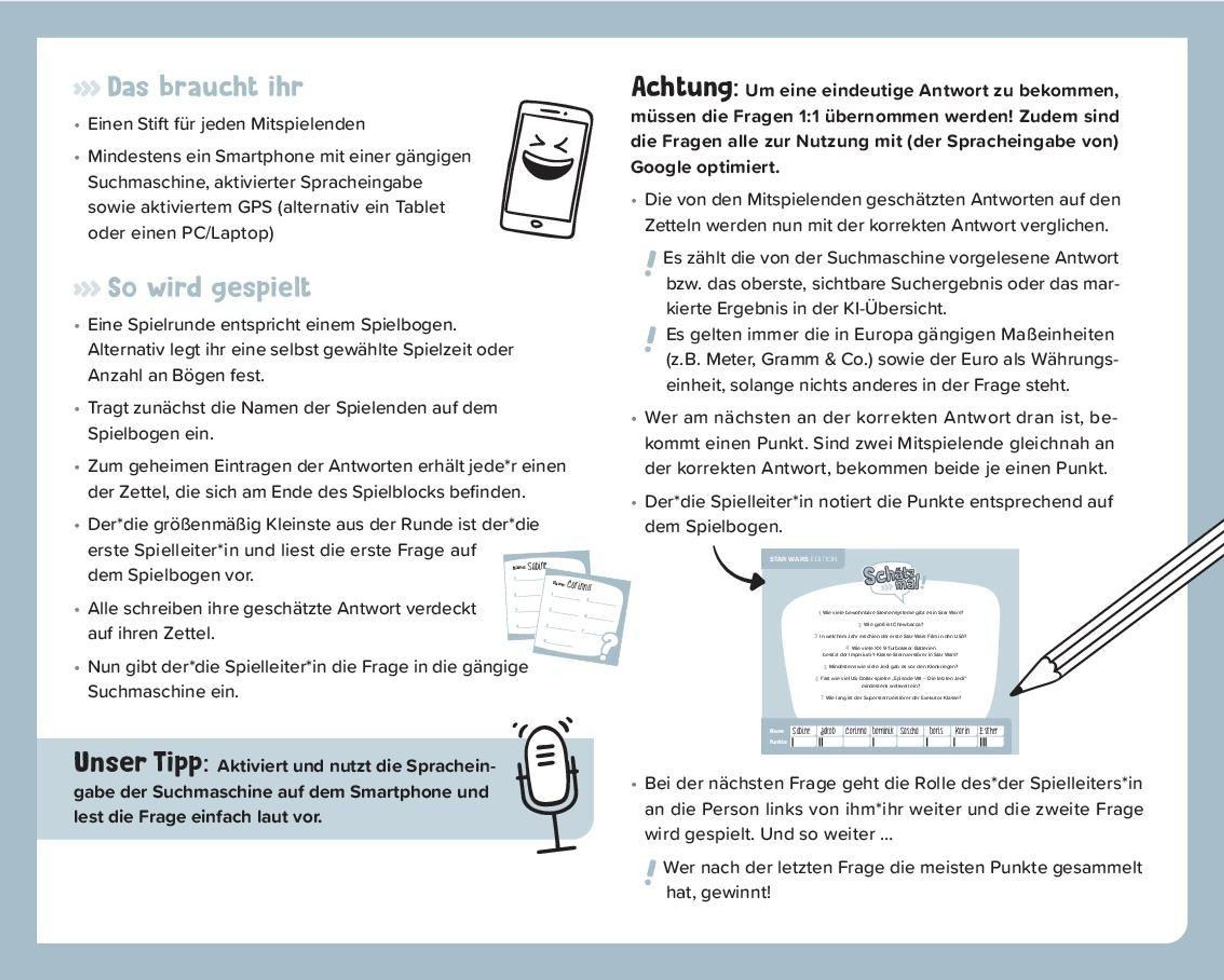 Daheim, bei Feiern oder im Urlaub -- für zwanglose, spaßige Spielerunden mit Freunden und Familie oder auch als Geschenk und Mitbringsel ist "Schätz mal!" immer genau das Richtige!