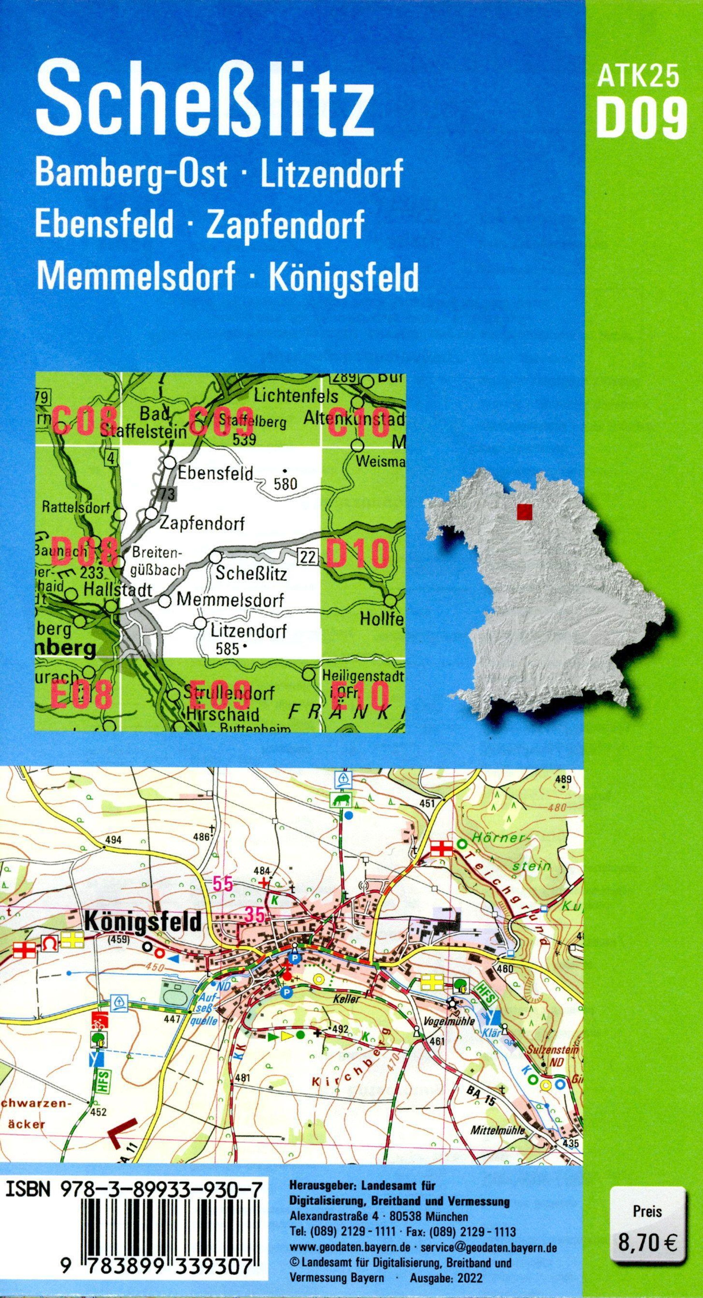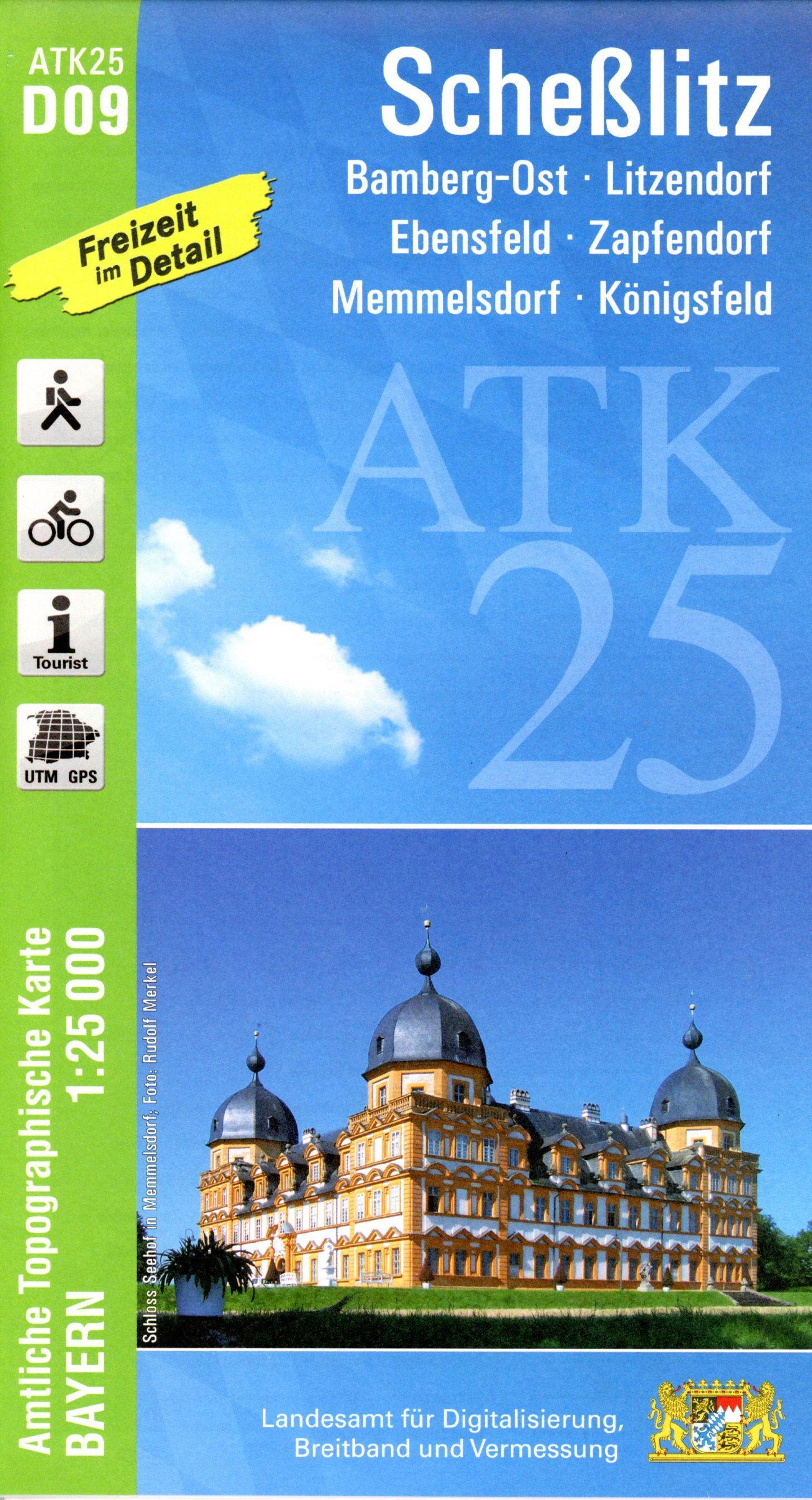 Kartenblatt ATK25-D09 Scheßlitz: REGION: Oberfranken, Fränkische Alb, Fränkische Schweiz ORTE: Scheßlitz, Bamberg-Ost, Litzendorf, Ebensfeld, Zapfendorf, Memmelsdorf, Königsfeld