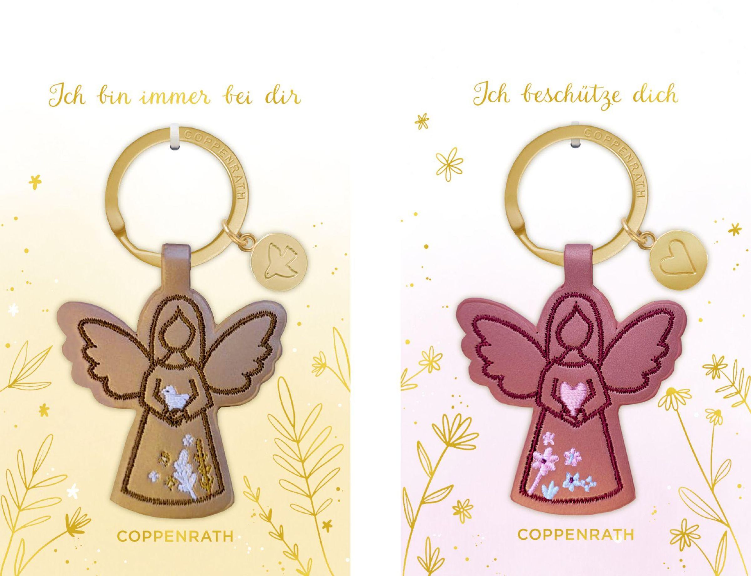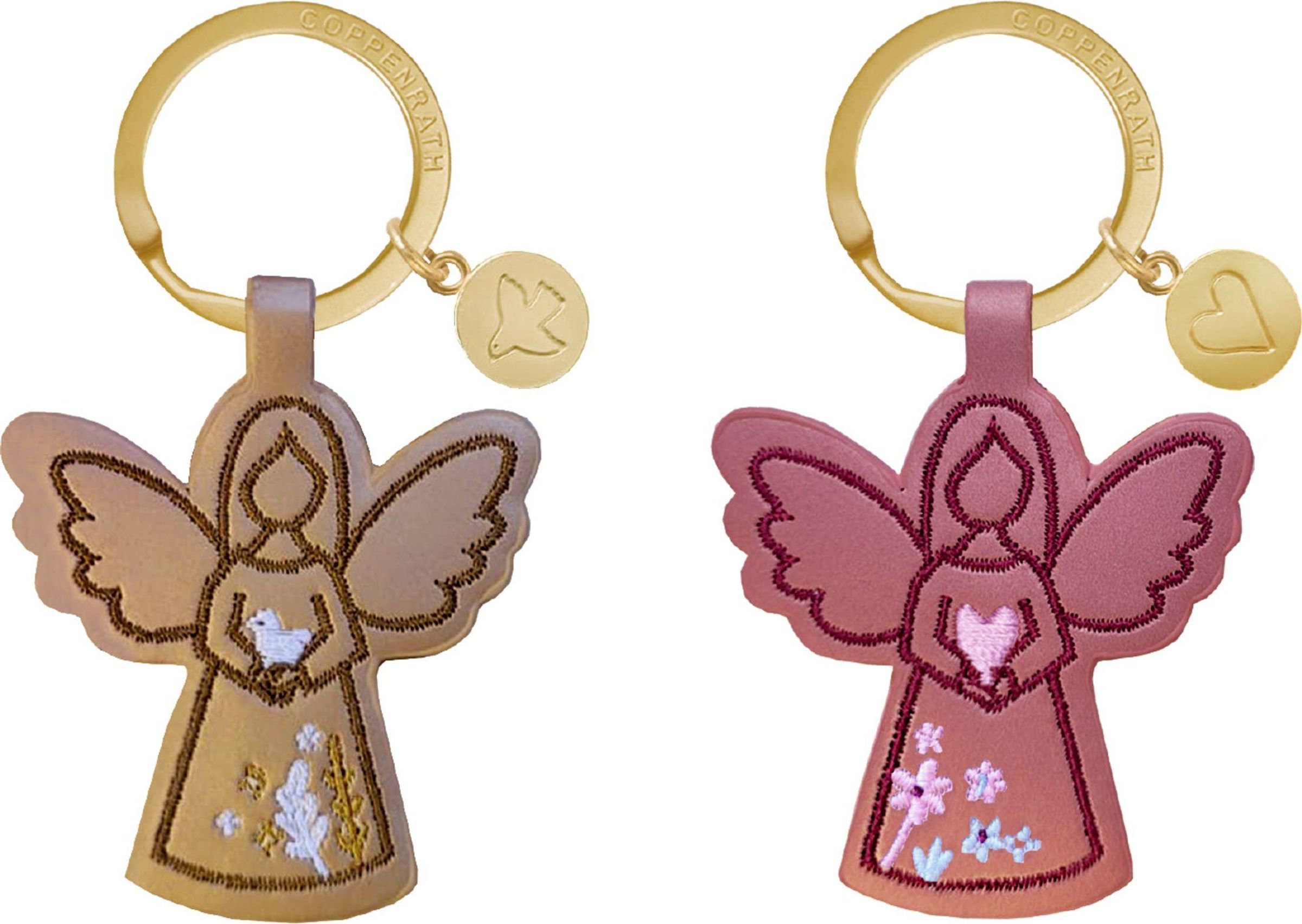 Der Schlüsselanhänger aus schimmerndem PU-Leder ist mit einer liebevollen Stickerei in zwei harmonischen Garnfarben gestaltet und wird auf einer attraktiven Trägerkarte mit edler Folienveredelung präsentiert. Als symbolischer Wegbegleiter für den Alltag überzeugt er durch seine weiche Haptik, die sorgfältige Verarbeitung und sein zeitloses Design. So wird er zu einem kleinen Geschenk mit emotionalem Mehrwert, das Schutz, Nähe und gute Wünsche vermittelt. Der Preis gilt pro Stück, eine Farbauswahl ist nicht möglich.