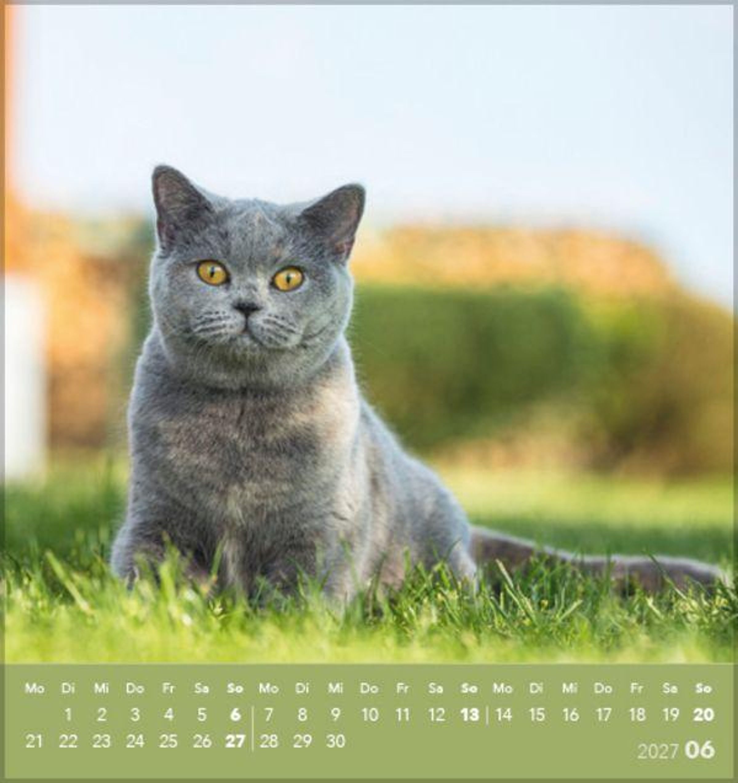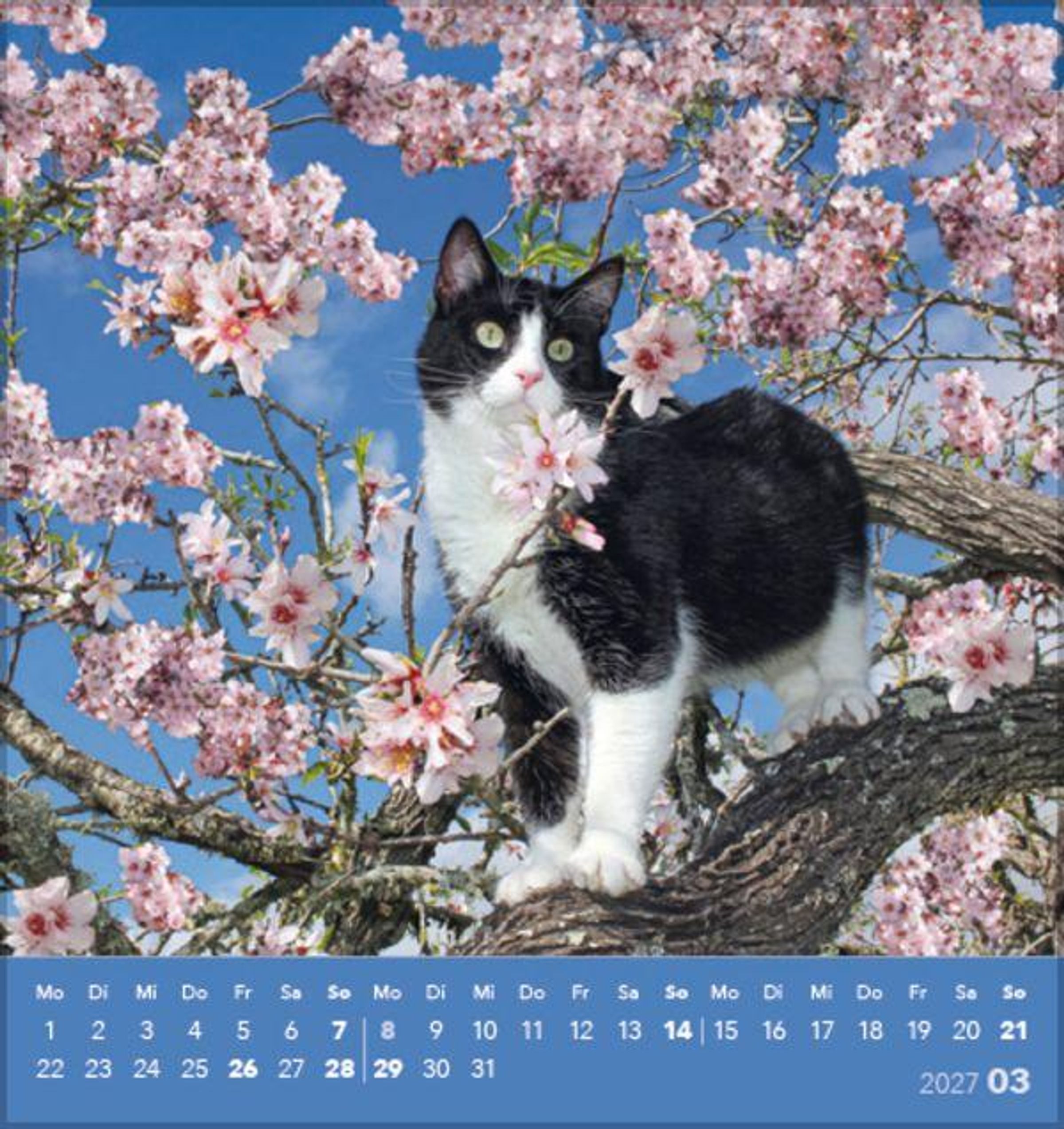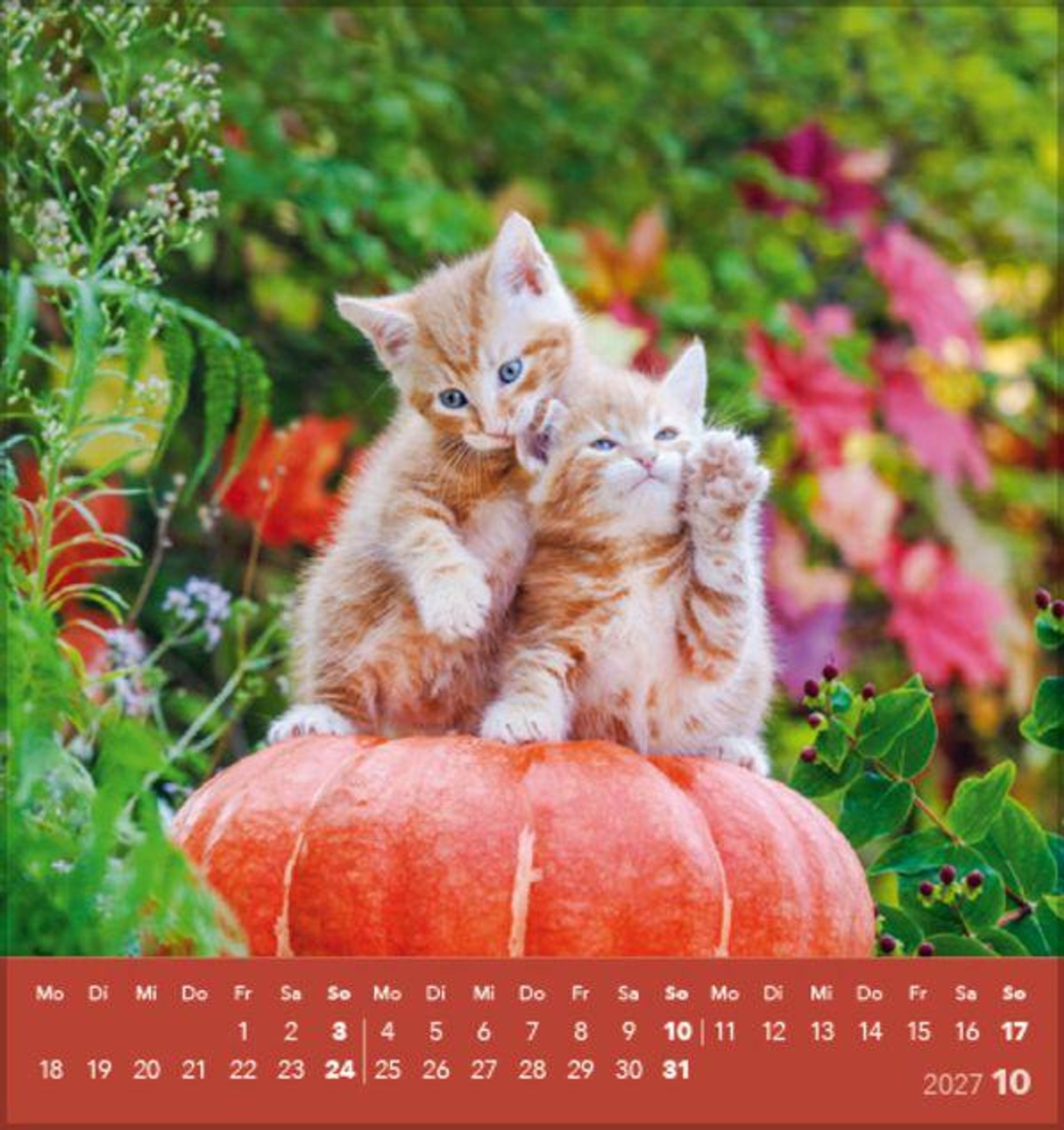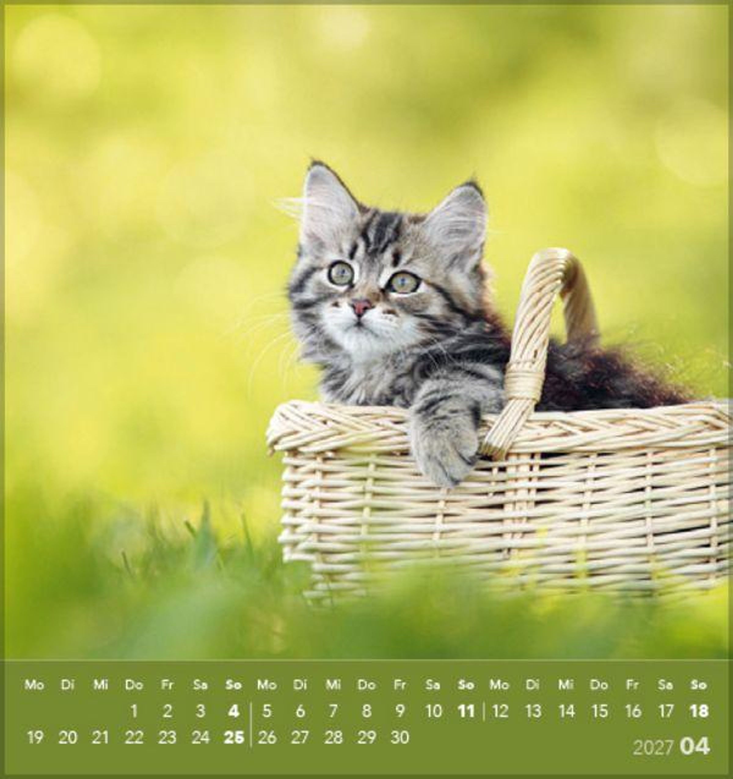 Aufstellbarer Postkartenkalender mit bezaubernden Fotos von eleganten Stubentigern und rührend niedlichen Kätzchen.