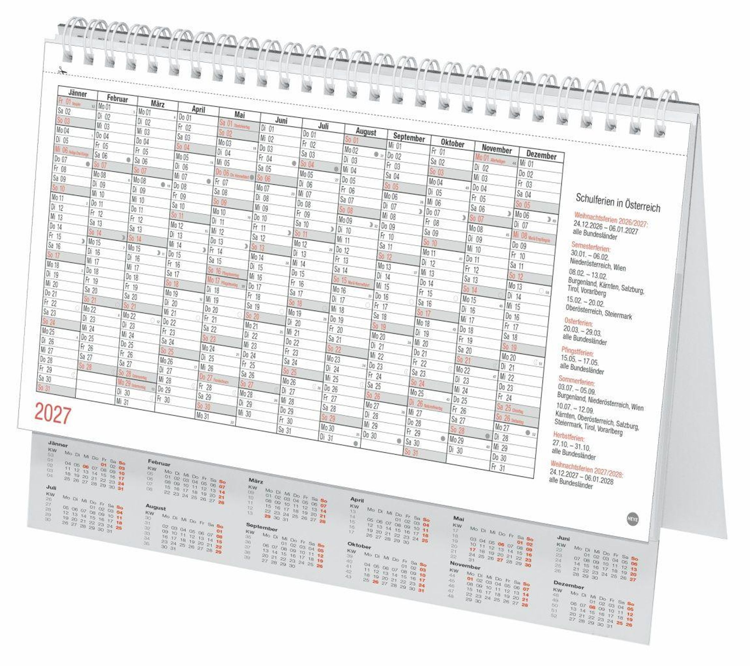 - Tischkalender zum Aufstellen. Klappkalender mit österreichischen Feiertagen und Schulferien. 29 x 21 cm.