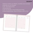 „Das wird mein Jahr“ steht groß auf einem rosafarbenen Kalender für 2026/2027 mit weißen und rosa Punkten., Buch