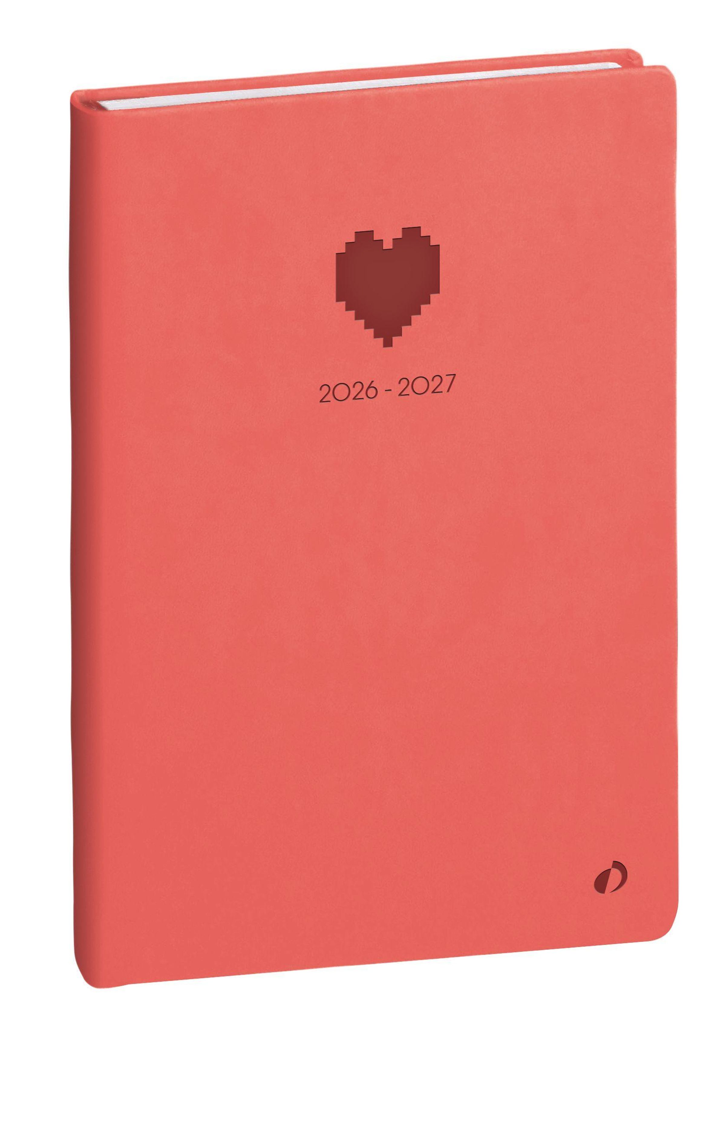 "2026 - 2027", Pixel-Herz-Symbol auf einem roten Kalenderdeckel; schlichtes Design., Buch