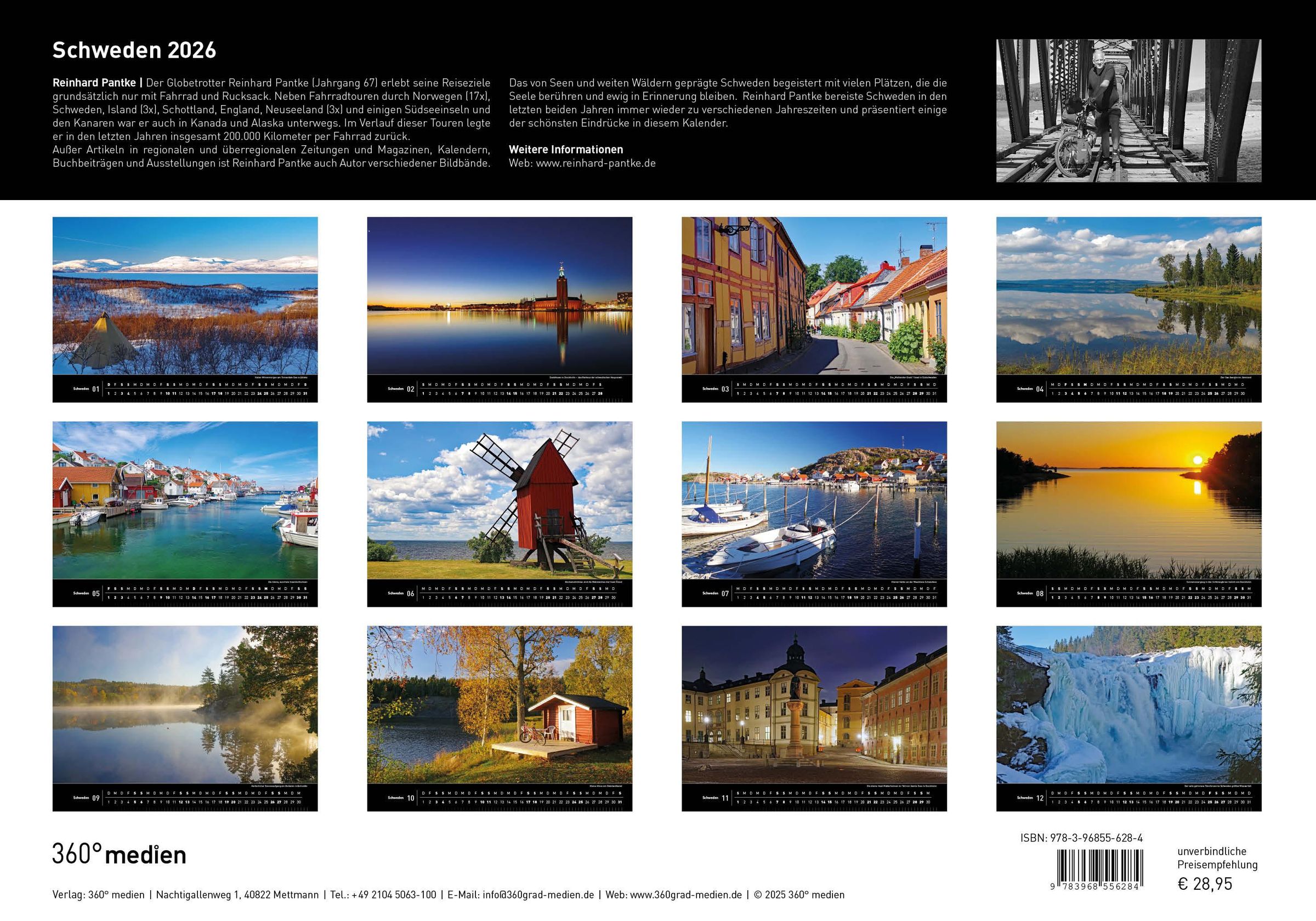 Aus traumhaften Schweden-Aufnahmen des Fotografen Reinhard Pantke hat die Redaktion von 360° medien die 13 schönsten Motive ausgewählt und in diesem Kalender zusammen gestellt. Präsentiert werden die Fotos auf hochwertigem Papier im Format 50 cm x 35 cm.