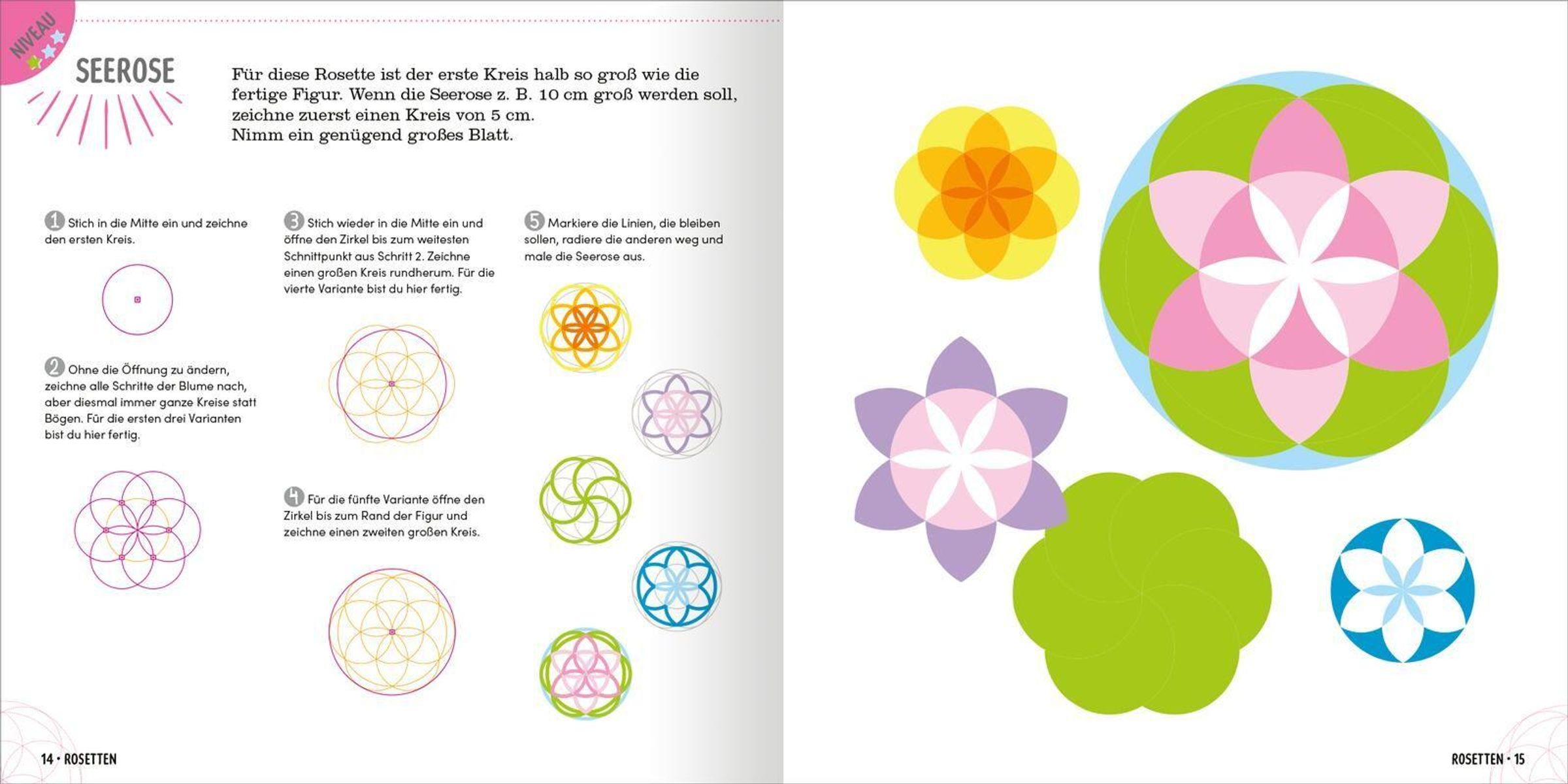 - Schritt für Schritt: In verständlicher Sprache und mit vielen Bildern lernen Kinder die vielen künstlerischen Möglichkeiten eines Zirkels kennen