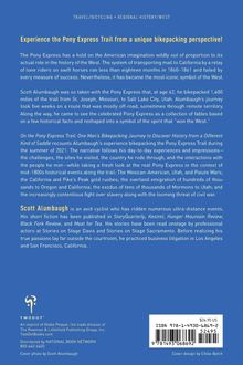 On The Pony Express Trail: One Man's Bikepacking Journey to Discover History from a Different Kind of Saddle recounts Scott Alumbaugh's experience bikepacking the Pony Express Trail during the summer of 2021. The narrative follows his day-to-day experiences and impressions---the challenges, the sites he visited, the country he rode through, and the interactions with the people he met---while taking a fresh look at the real Pony Express in the context of mid-1800s historical events along the trail: The Mexican-American, Utah, and Paiute Wars; the California and Pike's Peak gold rushes; the overland emigration of hundreds of thousands to Oregon and California; the exodus of tens of thousands of Mormons to Utah; and the increasingly contentious fight over slavery along with the looming threat of civil war.