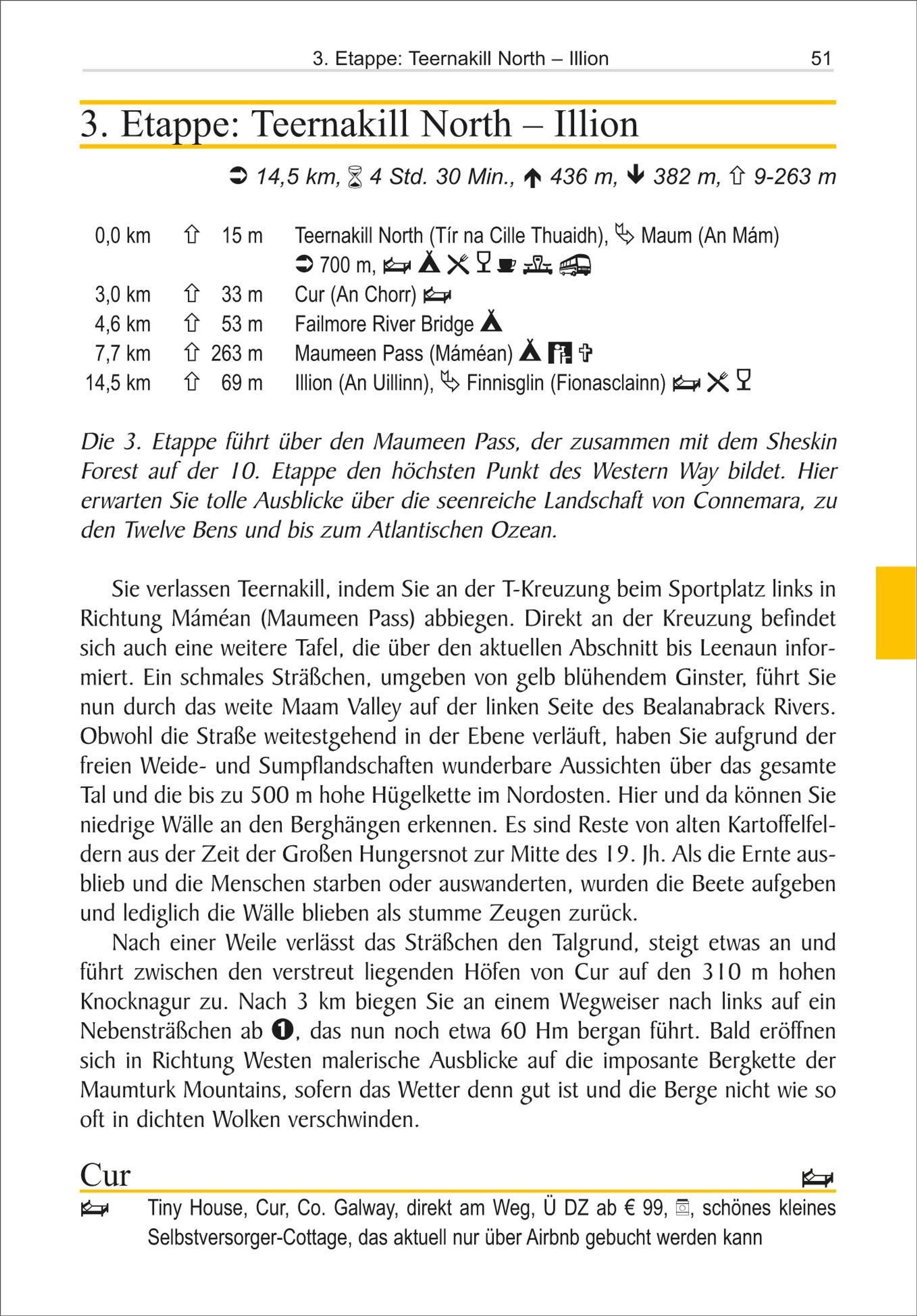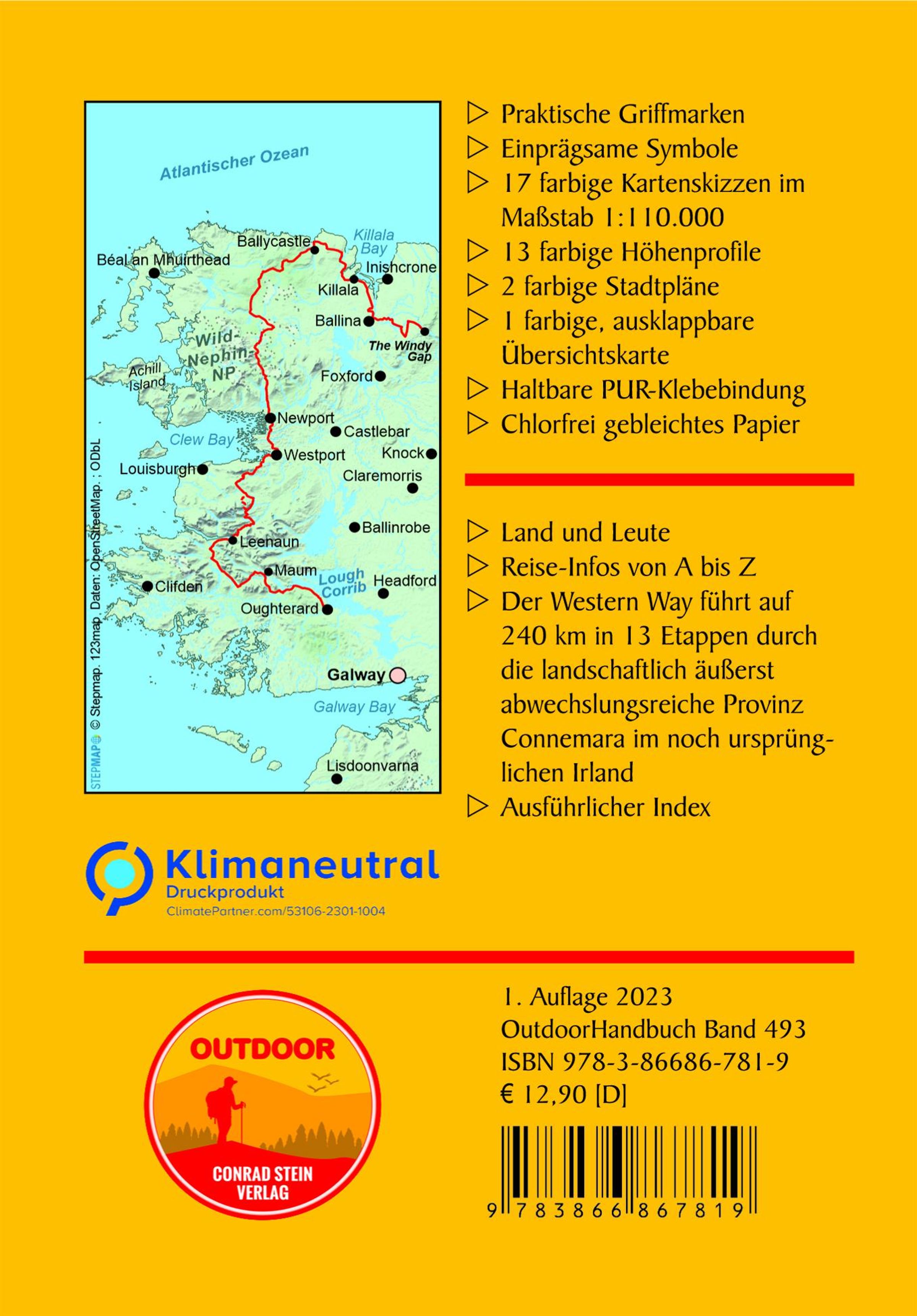 Hier im Nordwesten Irlands, in der historischen Provinz Connemara, lässt sich noch das ursprüngliche Irland erfahren. Mit dem Western Way führt auch ein 240 km langer Wanderweg in 13 Etappen durch diese landschaftlich äußerst abwechslungsreiche Region. Sie kommen an zahlreichen Seen vorbei, überschreiten karge Bergpässe und Ruinen erzählen von der wechselvollen Vergangenheit. Aufgrund der Länge einzelner Etappen und der stellenweise großen Abgeschiedenheit ist der Weg als moderat einzustufen - eine solide Kondition und eine gewisse Wetterfestigkeit sind Grundvoraussetzungen. Das Buch unterstützt bei der Planung und Durchführung der Wanderung. Es gibt praktische Tipps sowie alles Wissenswerte zu den 13 Etappen des Western Way: landschaftliche Besonderheiten, Einkehr-, Einkaufs- und Übernachtungsmöglichkeiten entlang des Weges und Informationen über den öffentlichen Nahverkehr. Ergänzt werden die Wegbeschreibung durch Karten und Höhenprofile sowie GPS-Tracks zum Download.