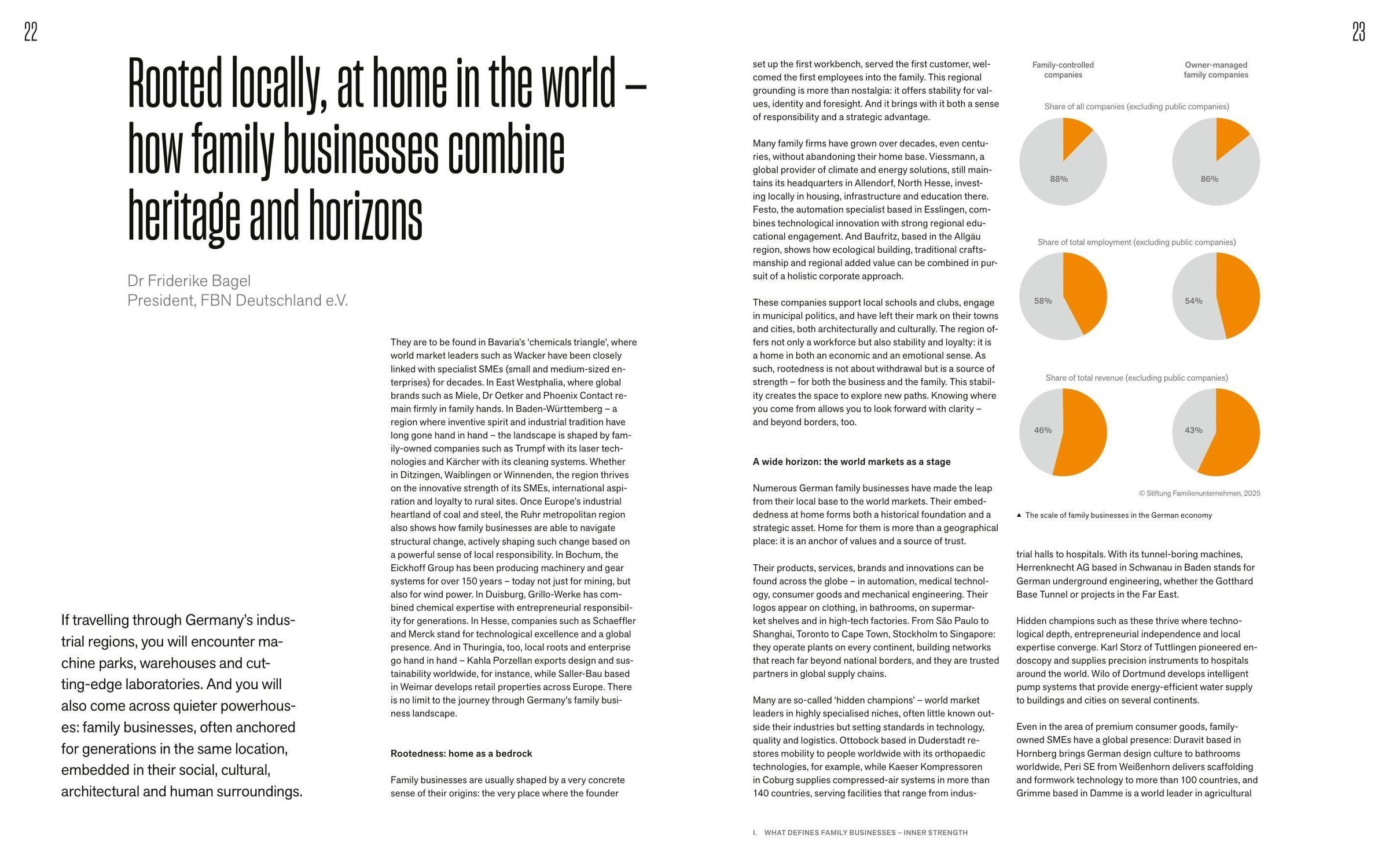 Yet their importance extends far beyond national borders. All over the world, German family businesses are synonymous with lasting quality, technical excellence and entrepreneurial reliability - especially in an era when stability has become crucial to success.