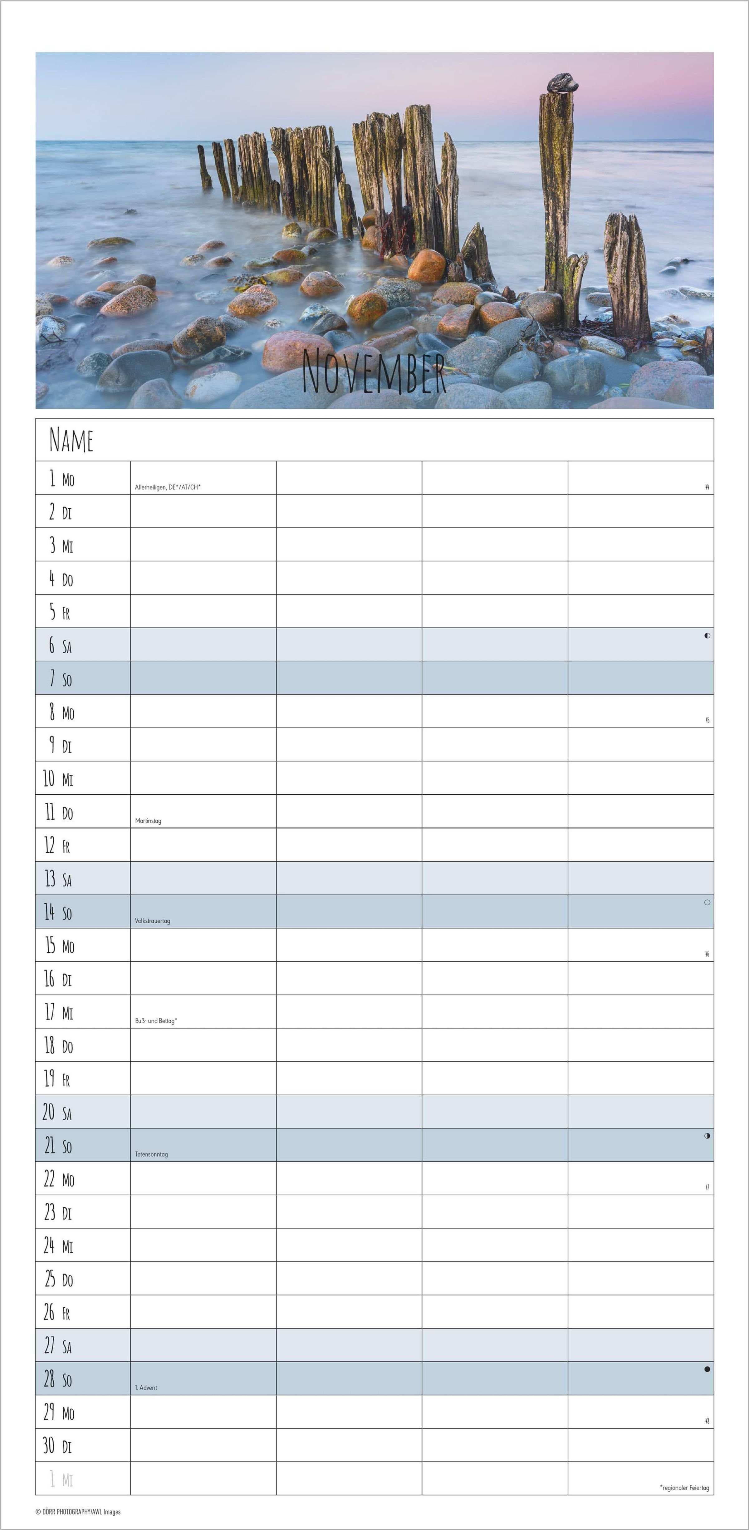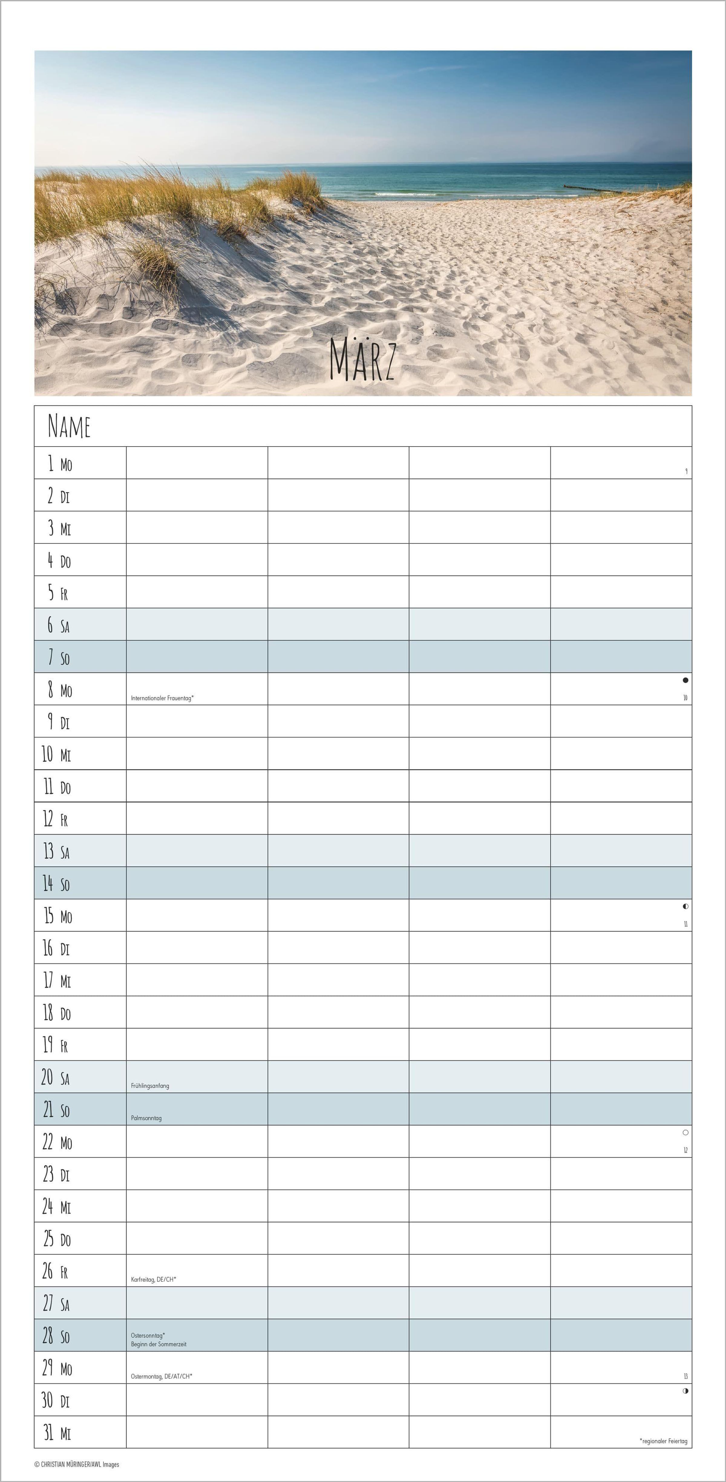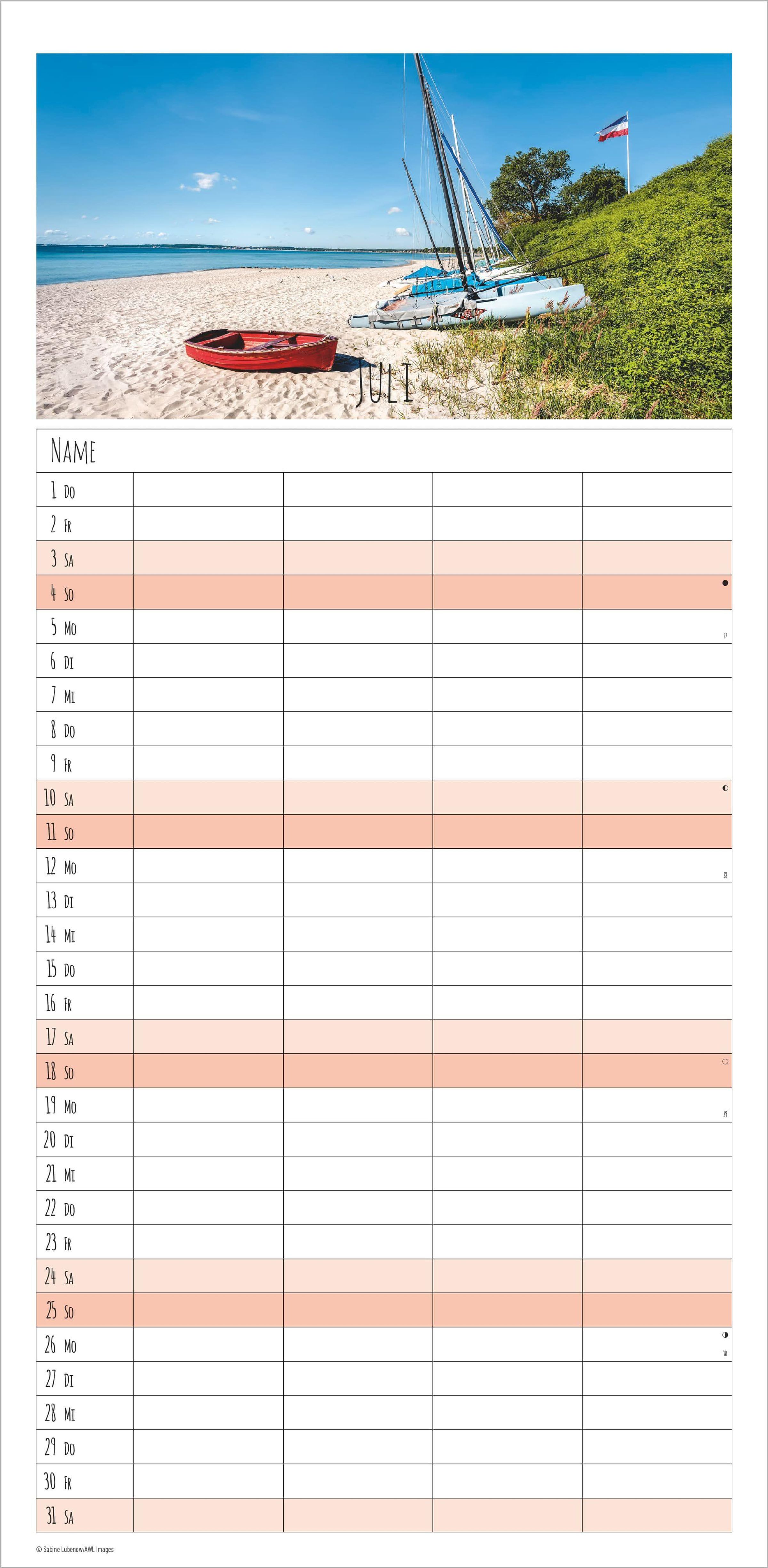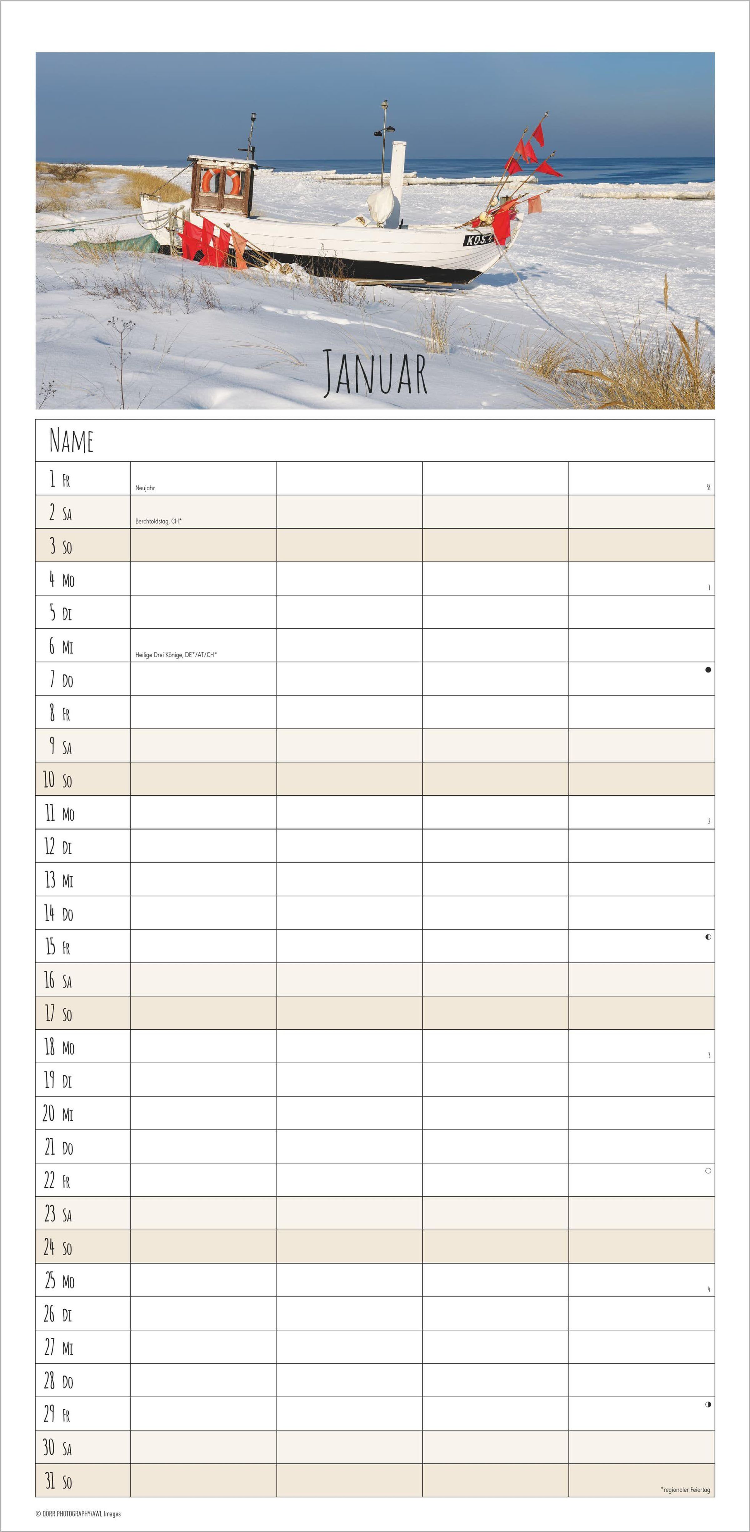 Der Familienplaner 2027 Seeblick von Alpha Edition vereint stimmungsvolle Landschaftsaufnahmen mit praktischer Alltagsorganisation. Monat für Monat begleiten Sie farbintensive Bilder vom Meer, die Ruhe und Entspannung in Ihren Alltag bringen. Dank der 4 Spalten lassen sich Termine und Aktivitäten übersichtlich für jedes Familienmitglied eintragen.