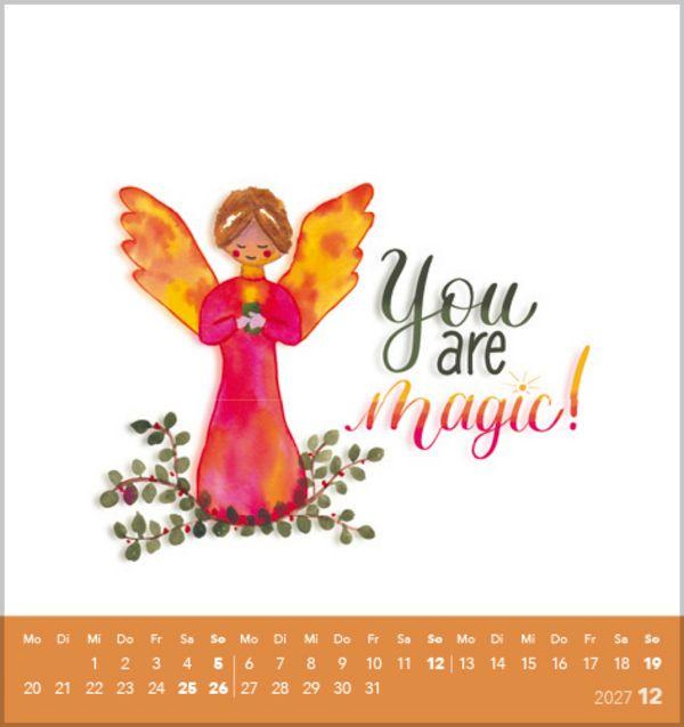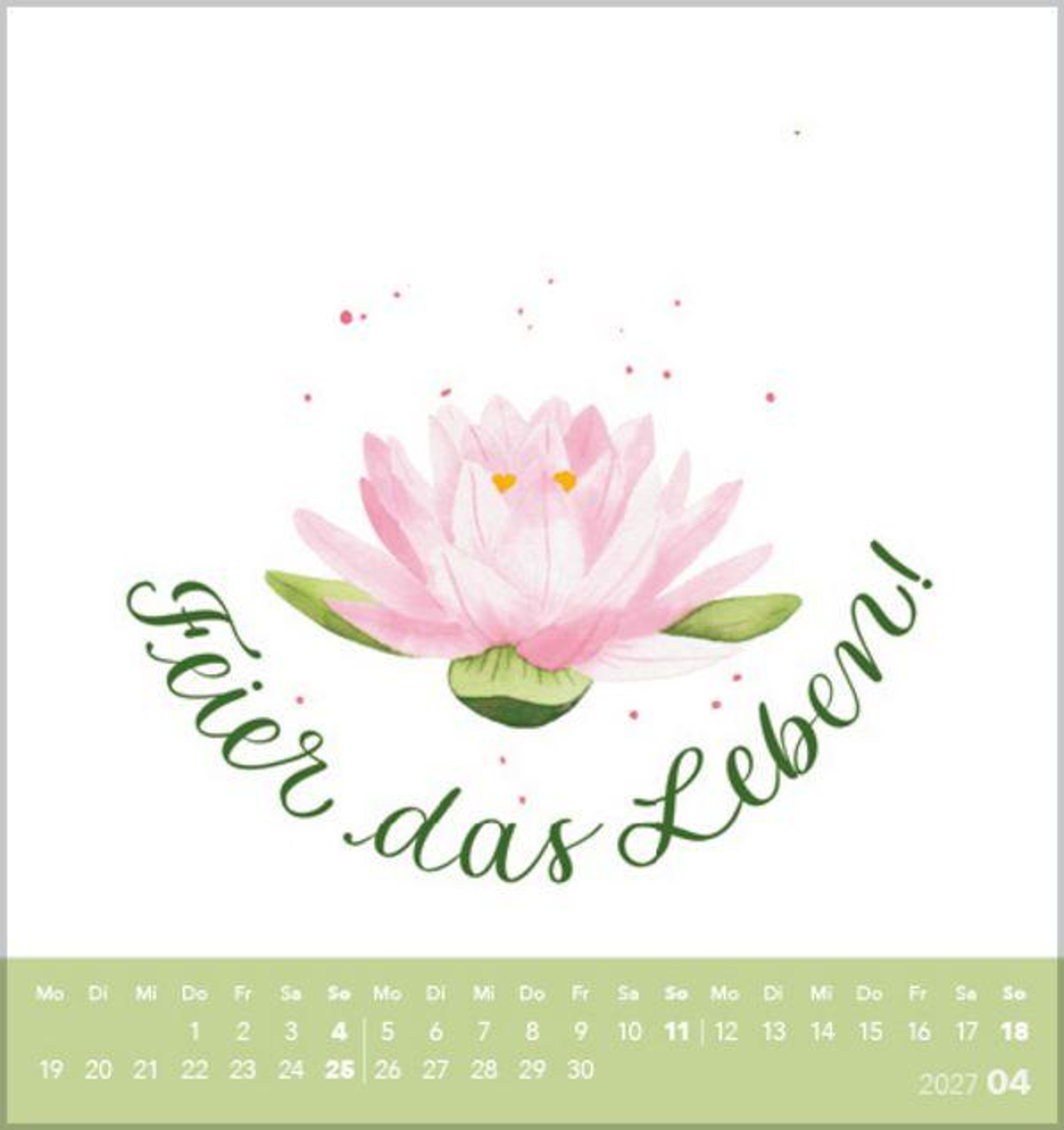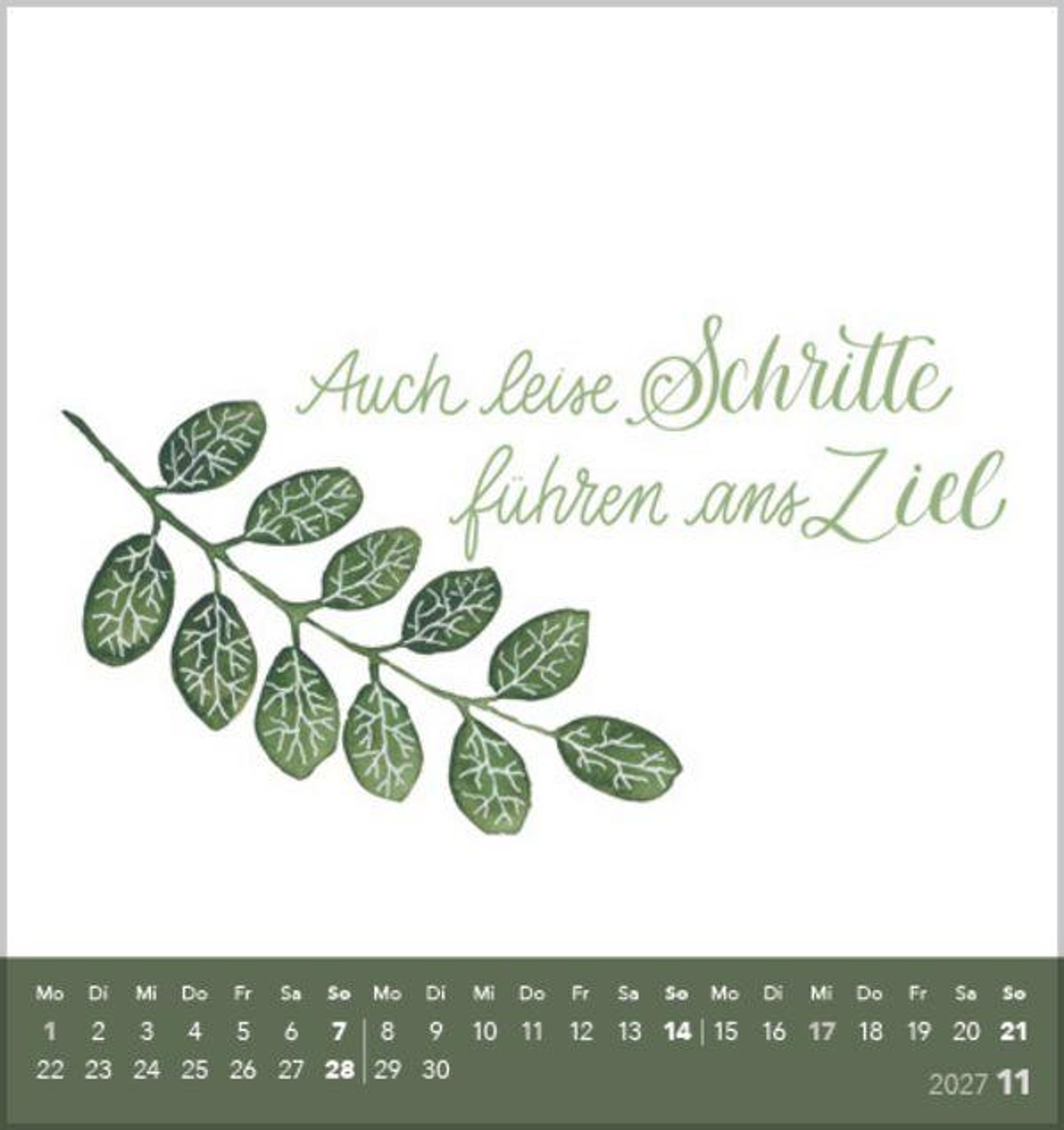 Jedes Kalenderblatt ist so gestaltet, dass es einfach abzutrennen ist. Somit können Sie jeden Monat eine Postkarte mit einem schönen Spruch versenden oder verschenken.