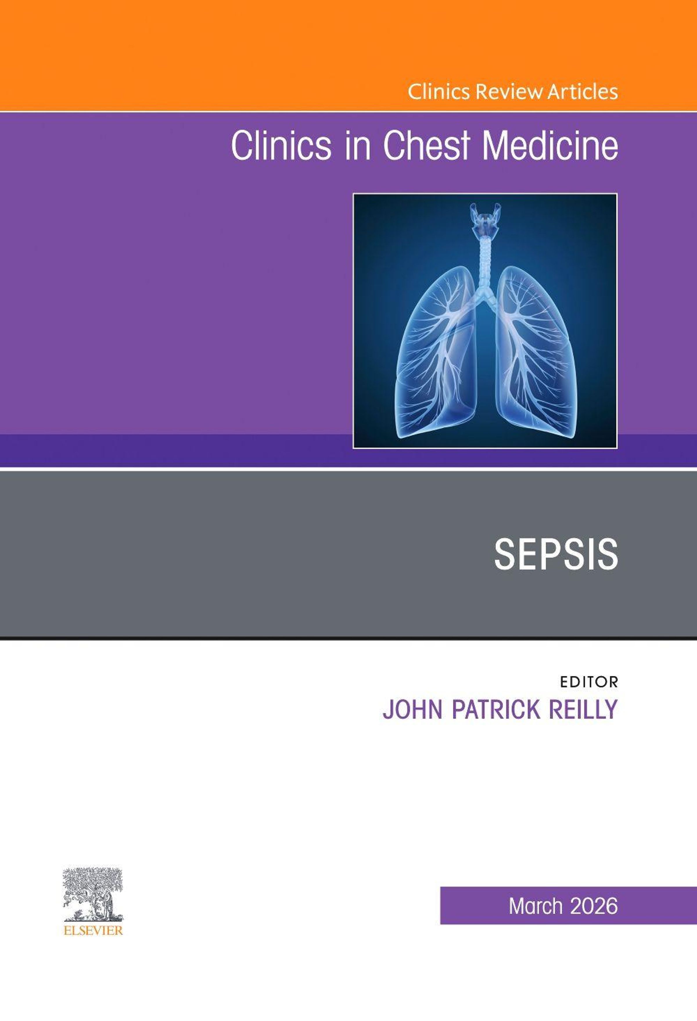 In this issue of Clinics in Chest Medicine , guest editors Dr. John P. Reilly brings his considerable expertise to the topic of Sepsis. Leading experts provide in-depth discussions on fluids, vasoactives, and resusitation targets in septic shock; beyond lactate: biomarkers in sepsis; principals of antimicrobial administration in sepsis; steroids in sepsis; pediatric sepsis; immunology of sepsis; and more.