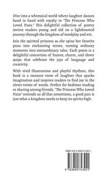 Dive into a whimsical world where laughter dances hand in hand with royalty in "The Princess Who Loved Puns." This delightful collection of poetry invites readers young and old on a lighthearted journey through the kingdom of wordplay and wit. Join the spirited princess as she spins her favorite puns into enchanting verses, turning ordinary moments into extraordinary tales. Each poem is a delightful concoction of humor, charm, and clever quips that celebrate the joys of language and creativity. With vivid illustrations and playful rhythms, this book is a treasure trove of laughter that sparks imagination and inspires readers to find joy in the clever twists of words. Perfect for bedtime reading or sharing among friends, "The Princess Who Loved Puns" reminds us all that sometimes, a good pun is just what a kingdom needs to keep its spirits high.