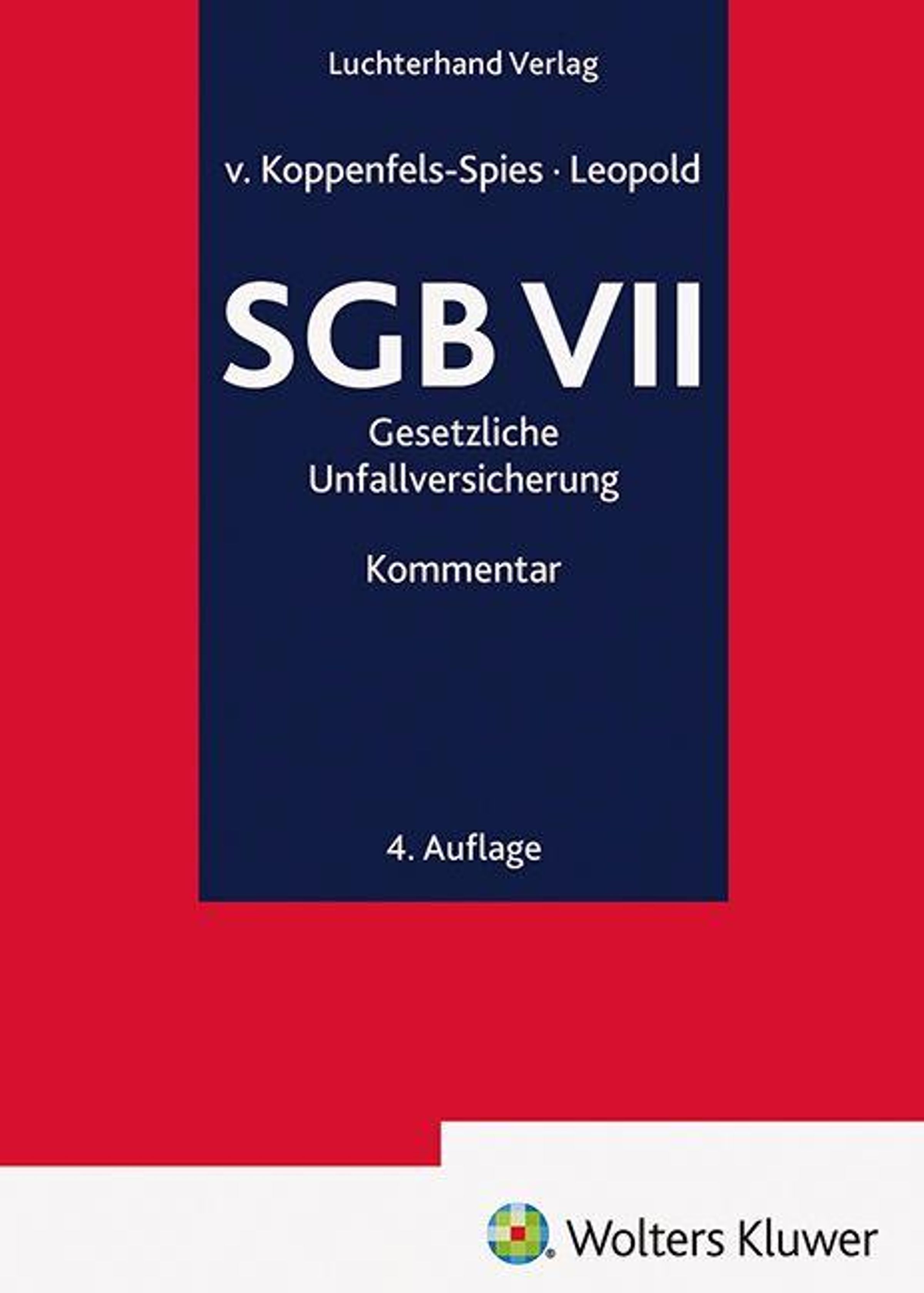 "SGB VII: Gesetzliche Unfallversicherung, Kommentar, 4. Auflage" auf rotem Hintergrund mit Verlagslogo unten., Buch