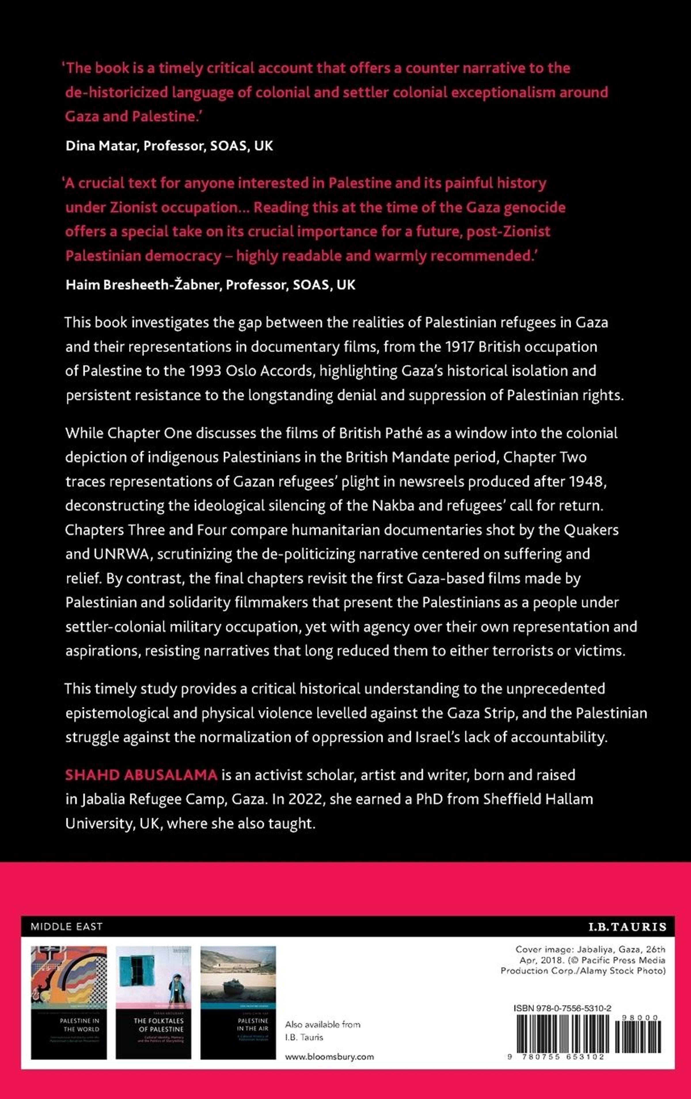 British Pathé is considered as a window into the wider colonial depiction of indigenous Palestinians in the British Mandate period; newsreels are examined as representations of the plight of Palestinian refugees in Gaza after Israel's proclamation and Gaza-focused humanitarian documentaries shot by the Quakers and UNRWA are compared. The final chapters trace the evolution of oppositional documentary filmmaking, from the cinema of revolution (1968-1982) to the peace deal of 1993. Through a close audio-visual and textual analysis, rooted in a historical-contextual approach, Shahd Abusalama explores the techniques used to project emancipatory representations while highlighting shifts and variations in the imagery around Gaza refugees. In exploring the historical, ideologically fuelled, representations of Gaza and its refugees in colonial and humanitarian films, and the opposition to it, this book reaffirms the continuity of Palestinian resistance, refugees' call for return, and the importance of Gaza itself to the Palestinian struggle.