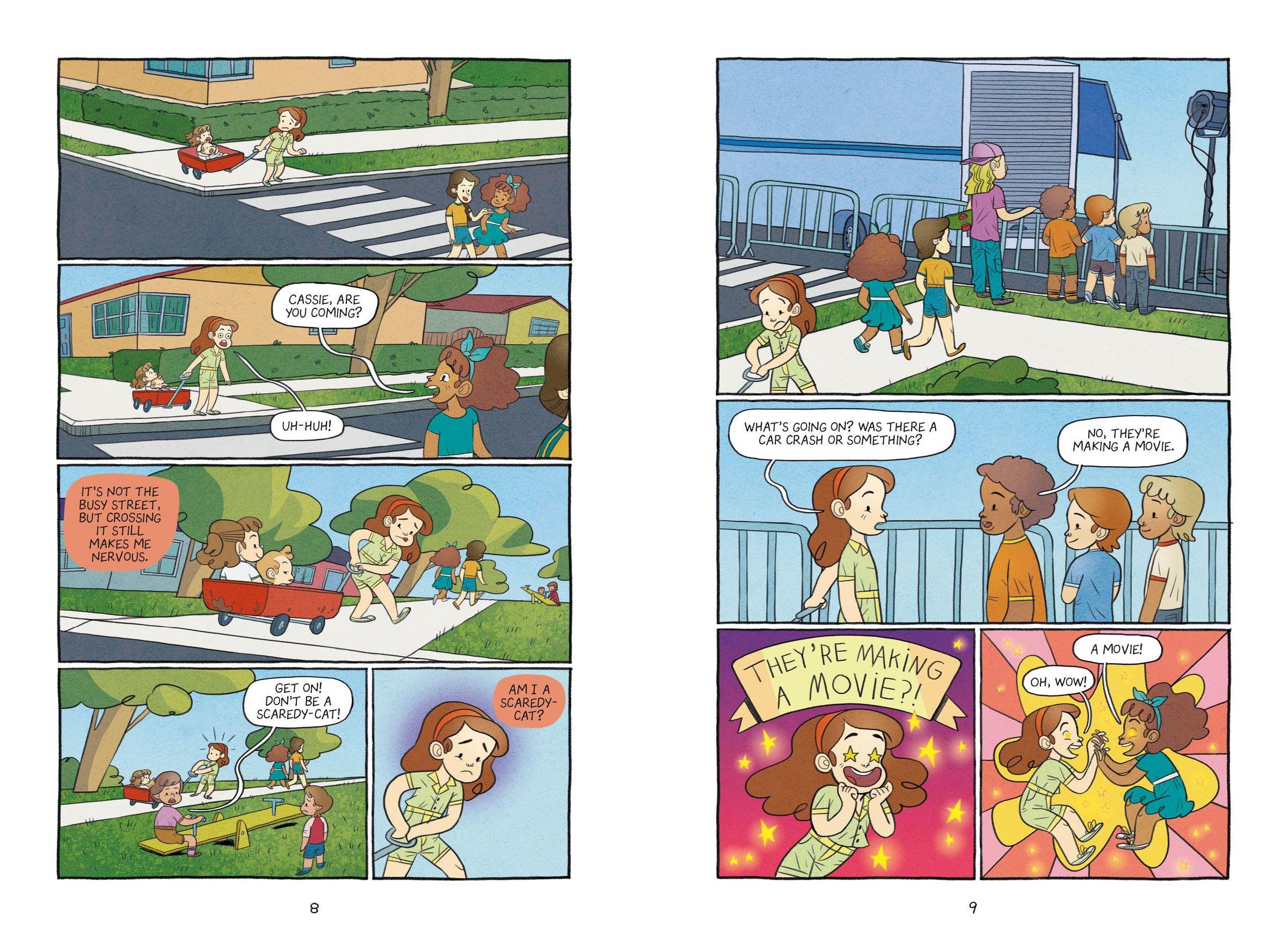 A movie is being filmed right in Cassie's neighborhood! Is this her chance to be a star? Dreams come true when she and her best friend Vali get hired as extras. Plus, she'll get paid, which will help her parents with their money troubles. But when Vali drops out of the movie, Cassie is stuck with the mean kid actors. Even worse, it turns out she's in a horror movie, and the monster in it scares her. Will she get called a "baby" or "scaredy-cat". Can Cassie make it through the movie without her fears driving her away?