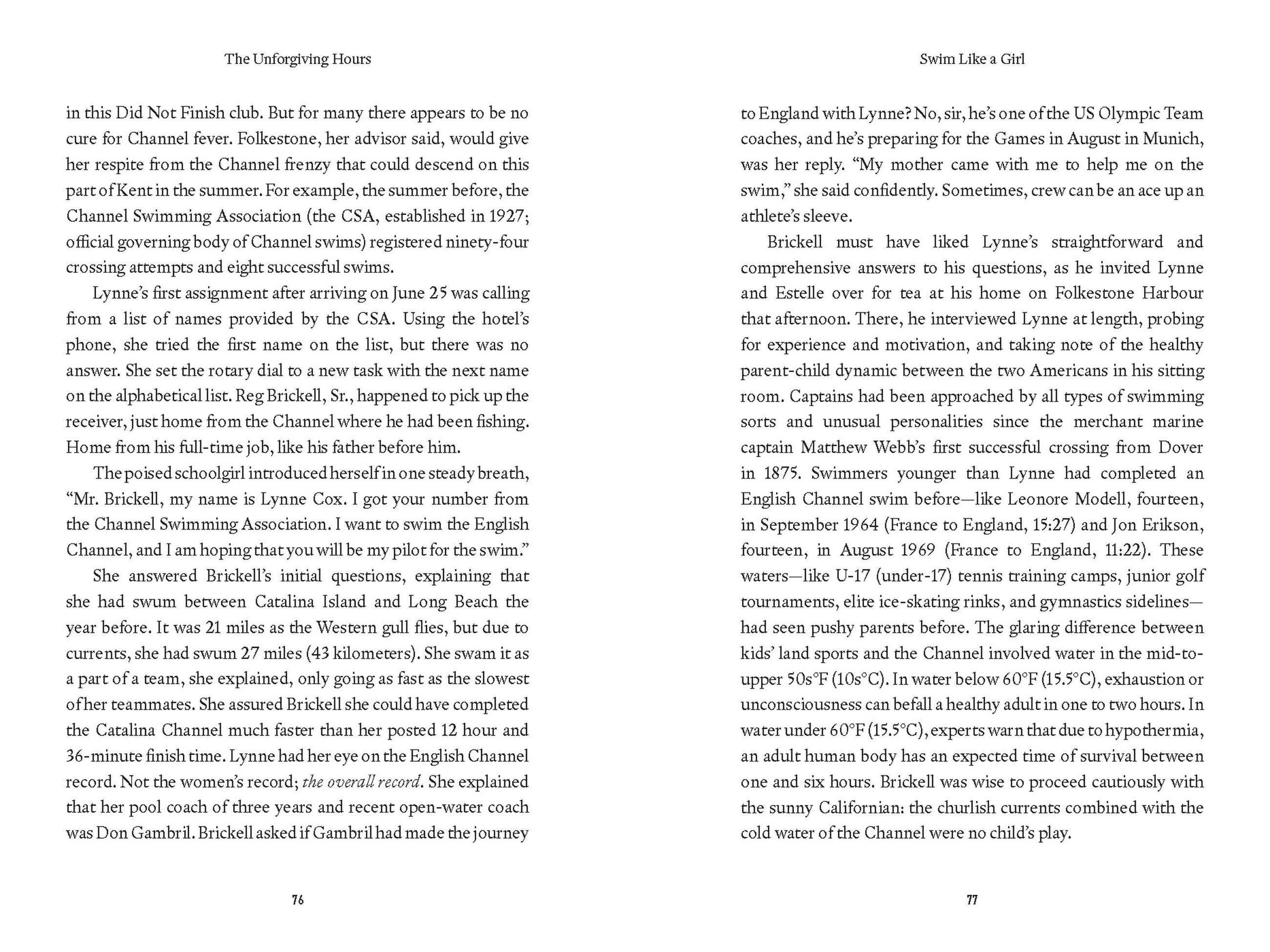 - Lynne Cox breaking the record for swimming across the English Channel at age 15