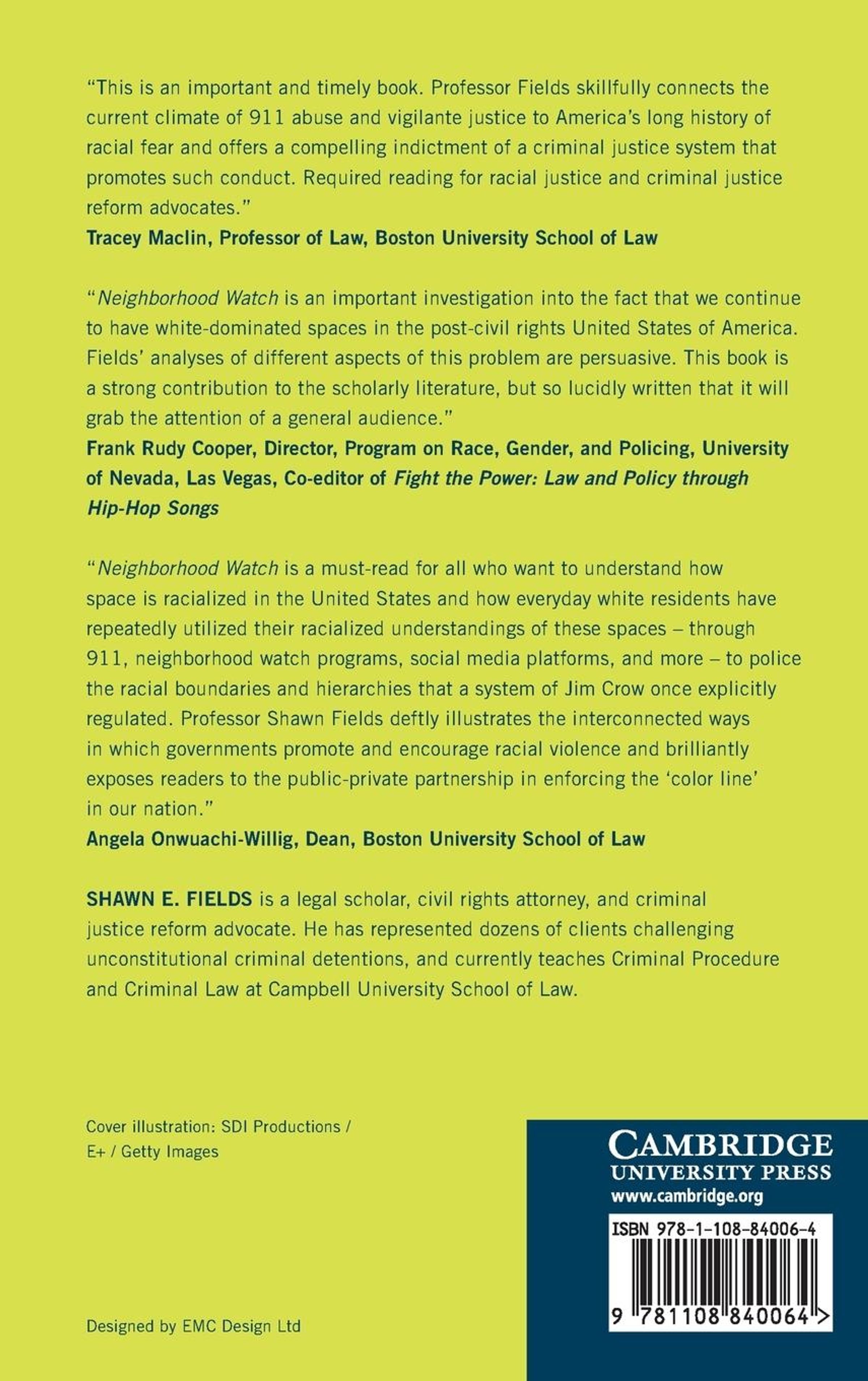 Although racism has plagued the American justice system since the nation's colonial beginnings, private White Americans are taking matters into their own hands. From racist 911 calls and hoaxes to grassroots voter suppression and vigilante 'self-defense,' concerted efforts are made every day by private citizens to exclude Black Americans from schools, neighborhoods, and positions of power. Neighborhood Watch examines the specific ways people police America's color line to protect 'White spaces.' The book charts how these actions too often result in harassment, arrest, injury, or death, yet typically go unchecked. Instead, these actions are promoted and encouraged by legislatures looking to expand racially discriminatory laws, a police system designed to respond with force to any frivolous report of Black 'mischief,' and a Supreme Court that has abdicated its role in rejecting police abuse. To combat these realities, Neighborhood Watch offers preliminary recommendations for reform, including changes to the 'maximum policing' state, increased accountability for civilians who abuse emergency response systems, and proposals to demilitarize the color line.