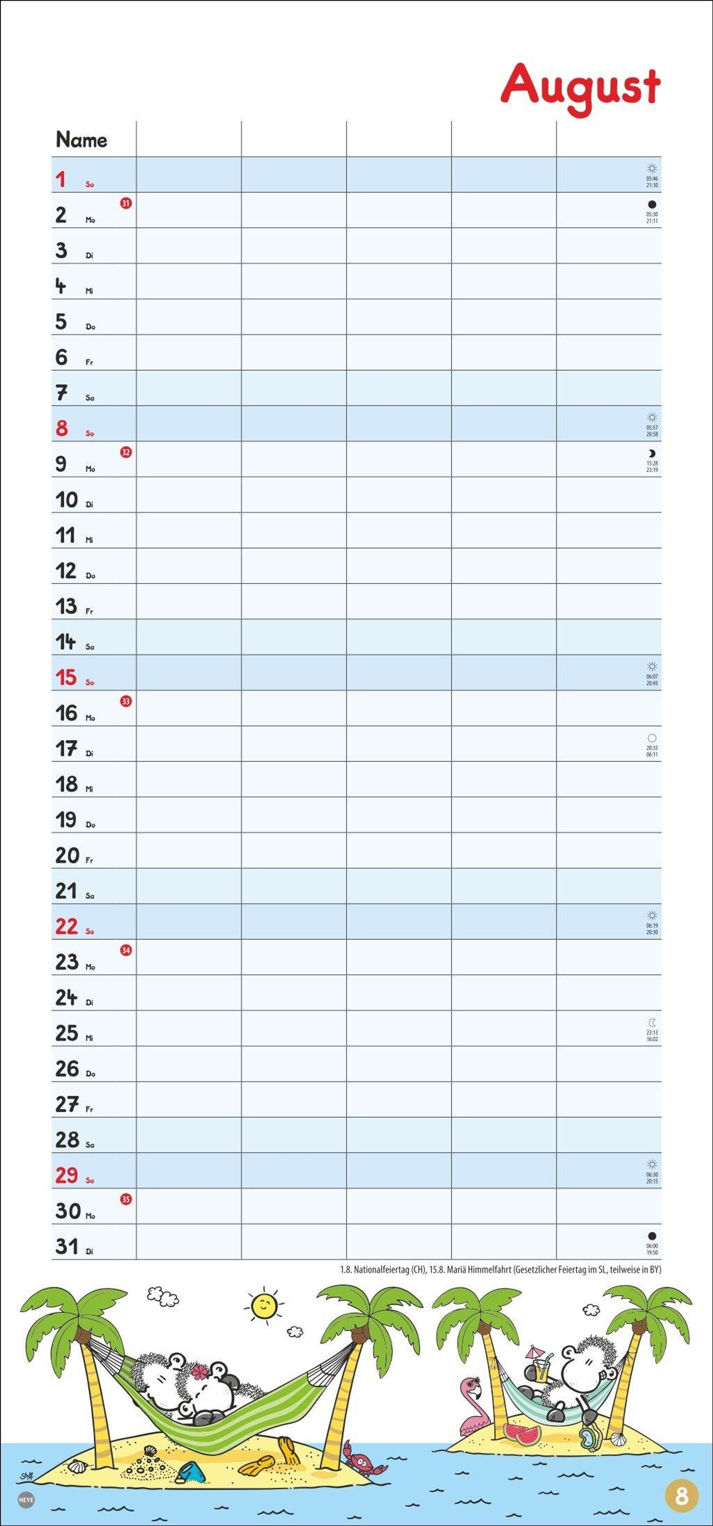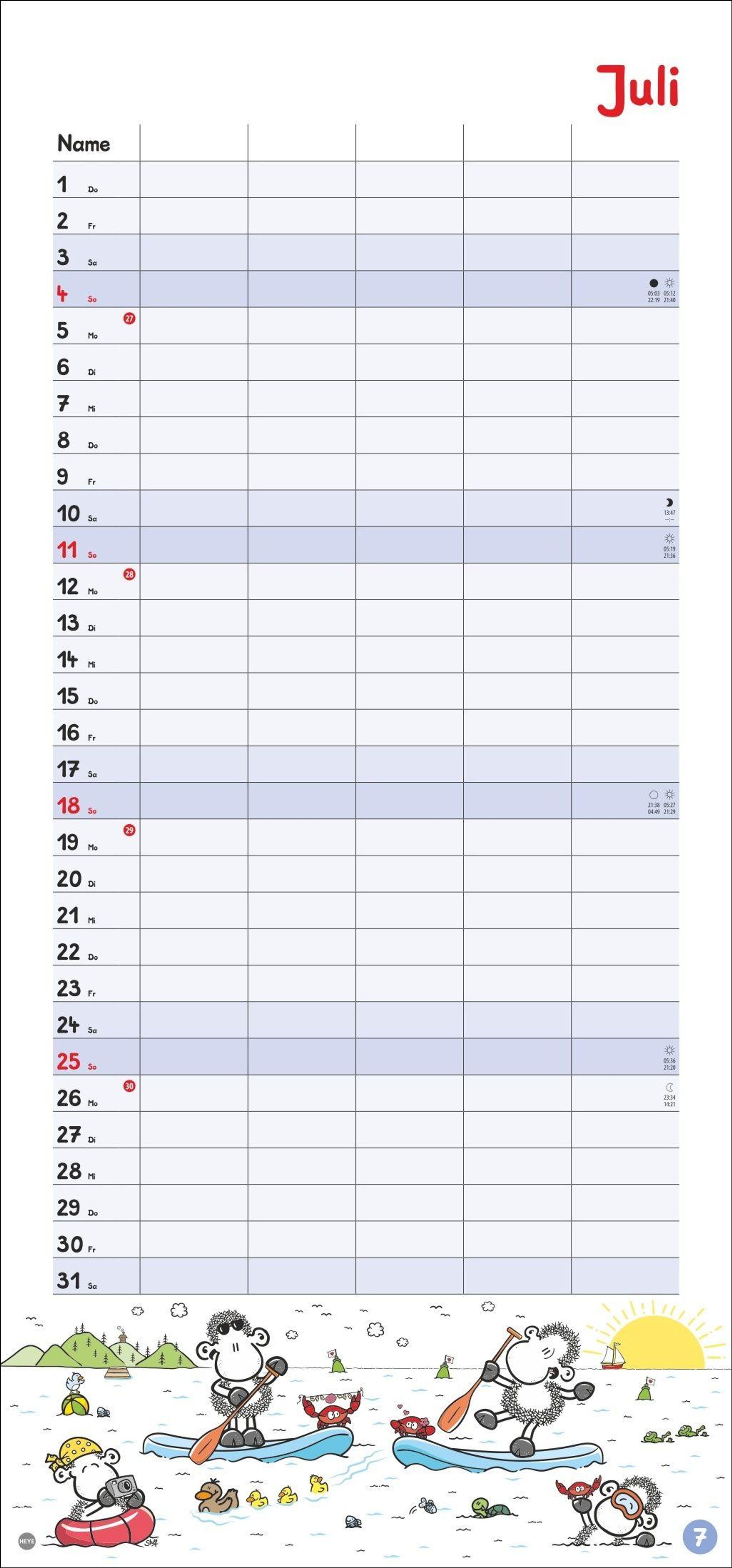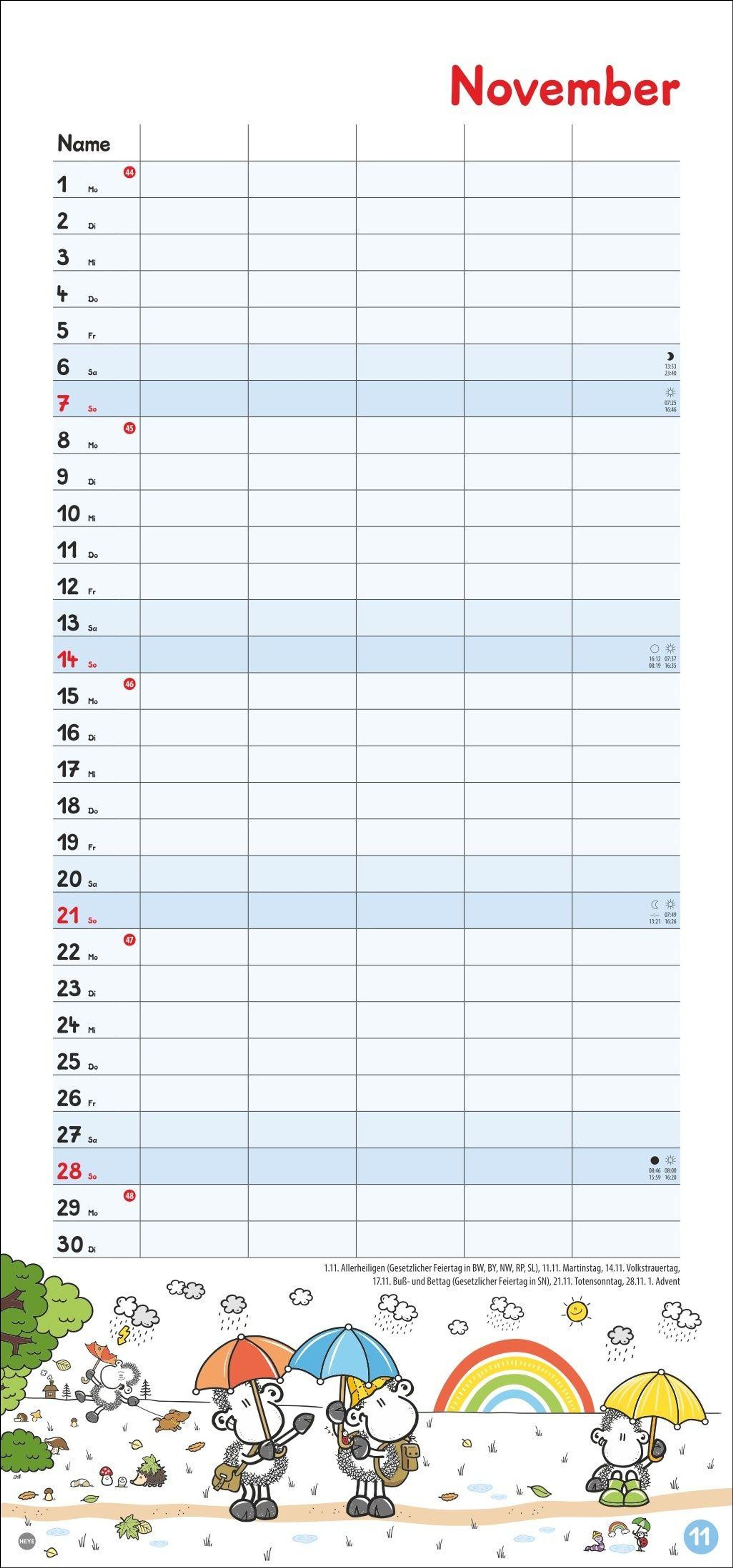 - Familienkalender mit 5 Spalten. Liebevoll illustrierter Familien-Wandkalender mit Schulferien und Stundenplänen.