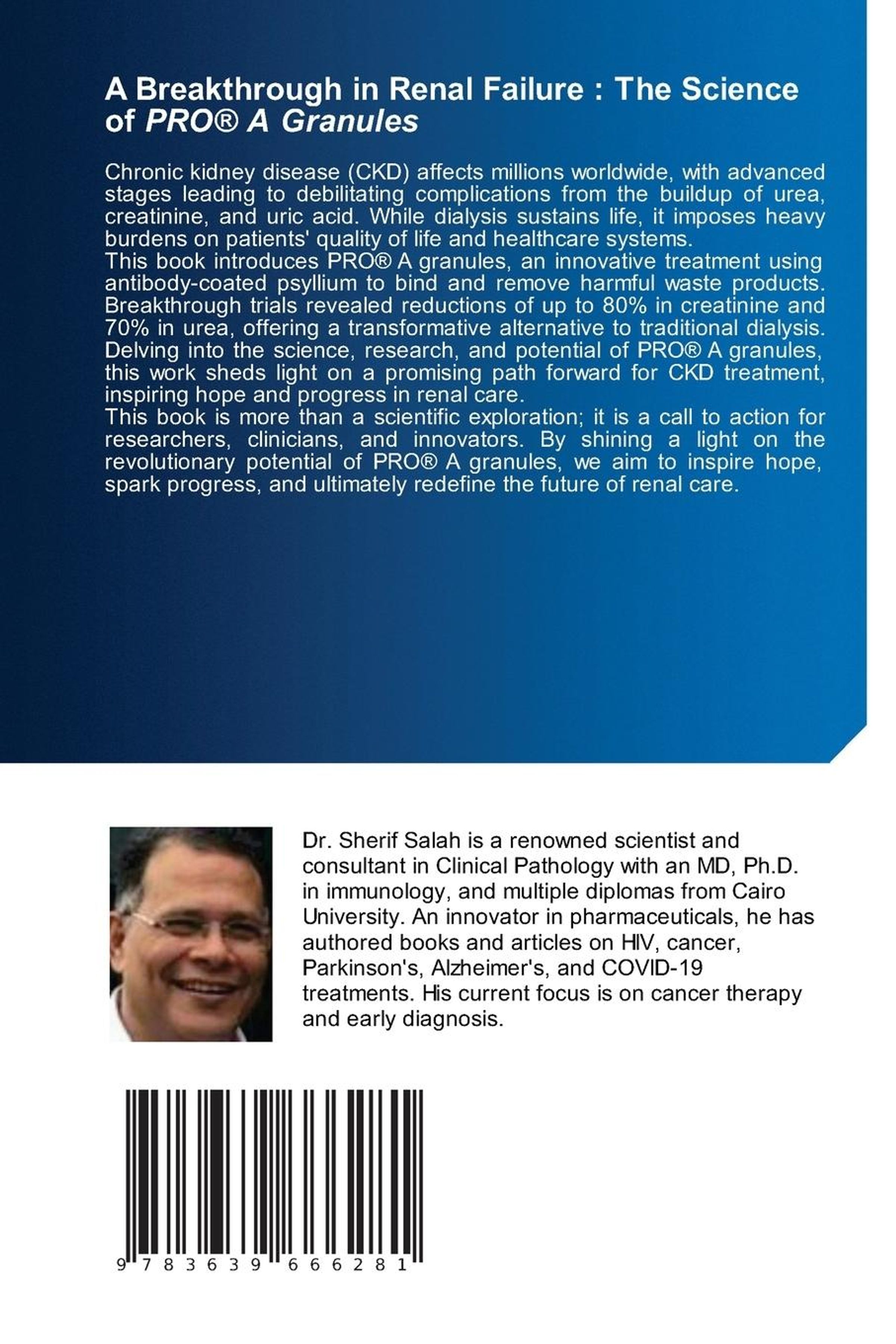 Chronic kidney disease (CKD) affects millions worldwide, with advanced stages leading to debilitating complications from the buildup of urea, creatinine, and uric acid. While dialysis sustains life, it imposes heavy burdens on patients' quality of life and healthcare systems. This book introduces PRO® A granules, an innovative treatment using antibody-coated psyllium to bind and remove harmful waste products. Breakthrough trials revealed reductions of up to 80% in creatinine and 70% in urea, offering a transformative alternative to traditional dialysis. Delving into the science, research, and potential of PRO® A granules, this work sheds light on a promising path forward for CKD treatment, inspiring hope and progress in renal care. This book is more than a scientific exploration; it is a call to action for researchers, clinicians, and innovators. By shining a light on the revolutionary potential of PRO® A granules, we aim to inspire hope, spark progress, and ultimately redefine the future of renal care.