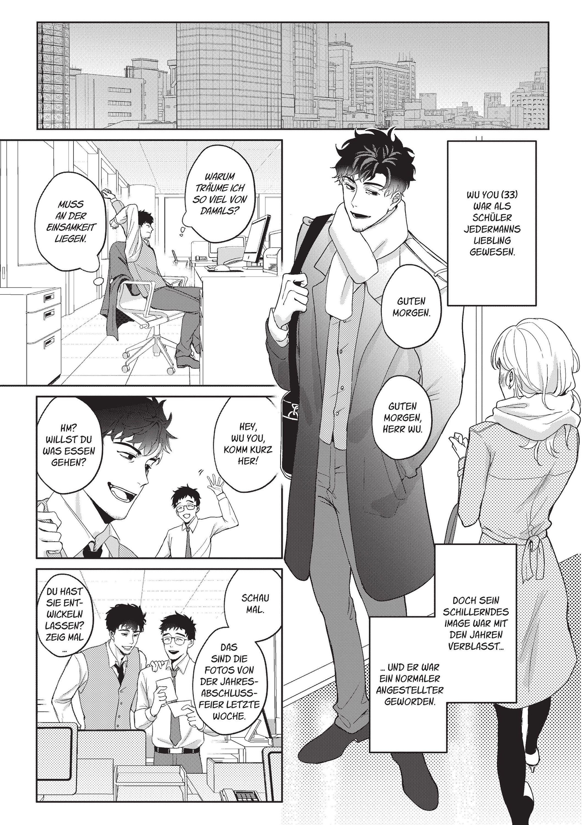 In der Schule war Wu You bei allen beliebt und stand immer im Mittelpunkt, aber jetzt, als erwachsener Mann, führt er ein unauffälliges Leben als Büroangestellter. Bis ihm eines Tages schmerzlich bewusst wird, wie allein er ist. Also beschließt Wu You, jemanden zu finden, mit dem er sein Leben teilen kann! Obwohl er in romantischen Dingen nicht unerfahren ist, weiß er absolut gar nicht, wo er damit anfangen soll... Und plötzlich kommt ihm sein junger Kollege Chiang Kin-Fan zuvor, der ihm völlig überraschend seine Liebe gesteht! Wu You ist komplett überfordert und weist ihn heftig zurück. Vielleicht ein bisschen zu heftig... Als er sich dafür entschuldigen möchte, geht alles plötzlich viel schneller als erwartet!