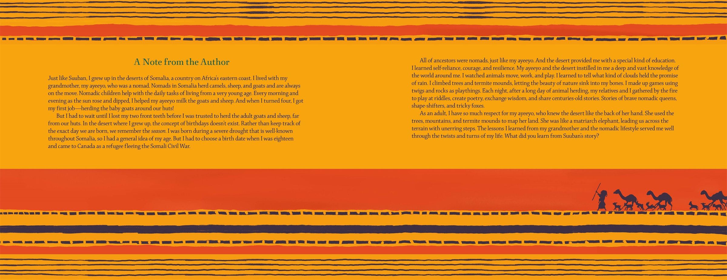 This gorgeously illustrated picture book is a joyful celebration of the Somali desert and a nomadic lifestyle, in a relatable tale of self-reliance, courage, and the beauty of nature.