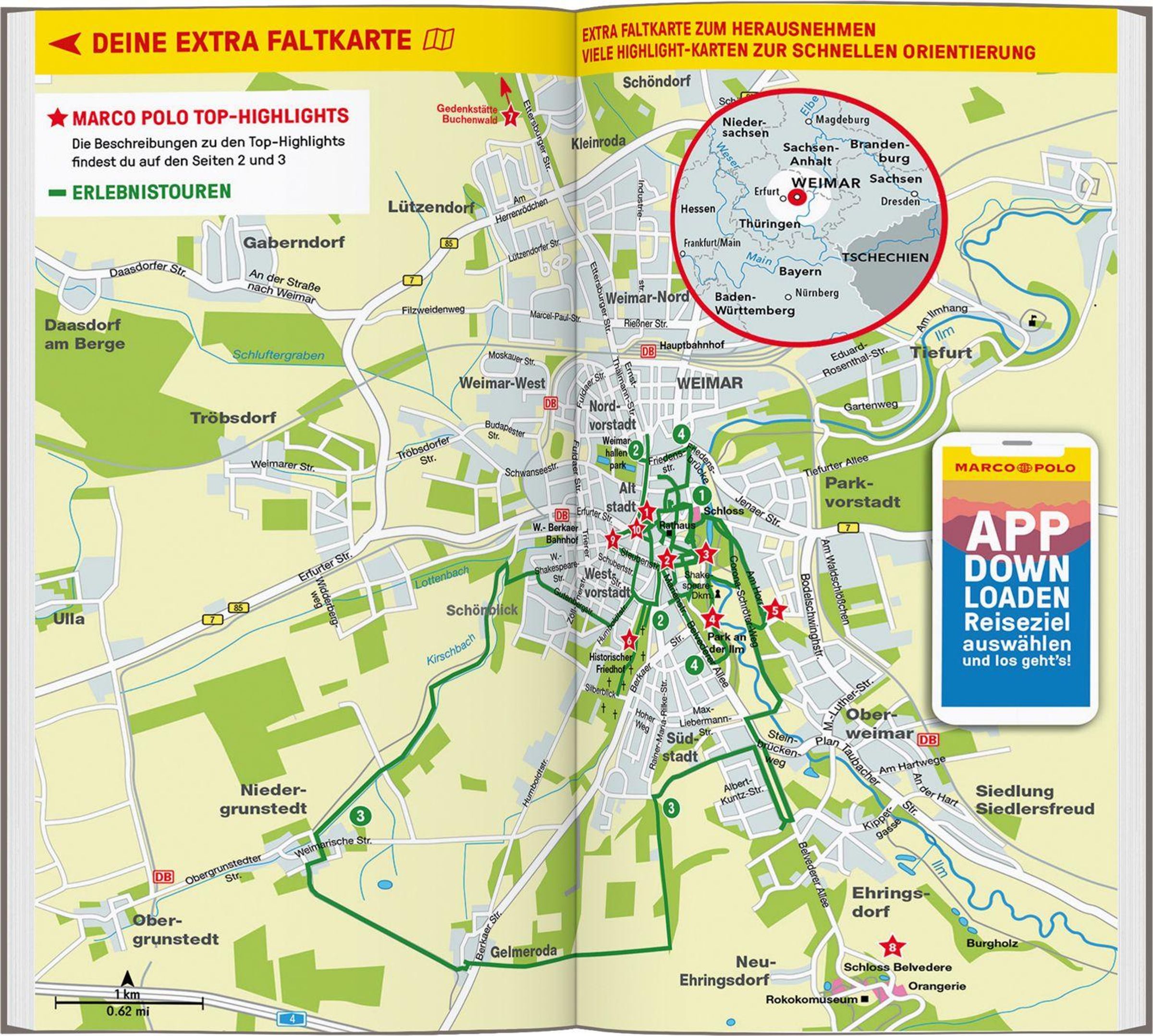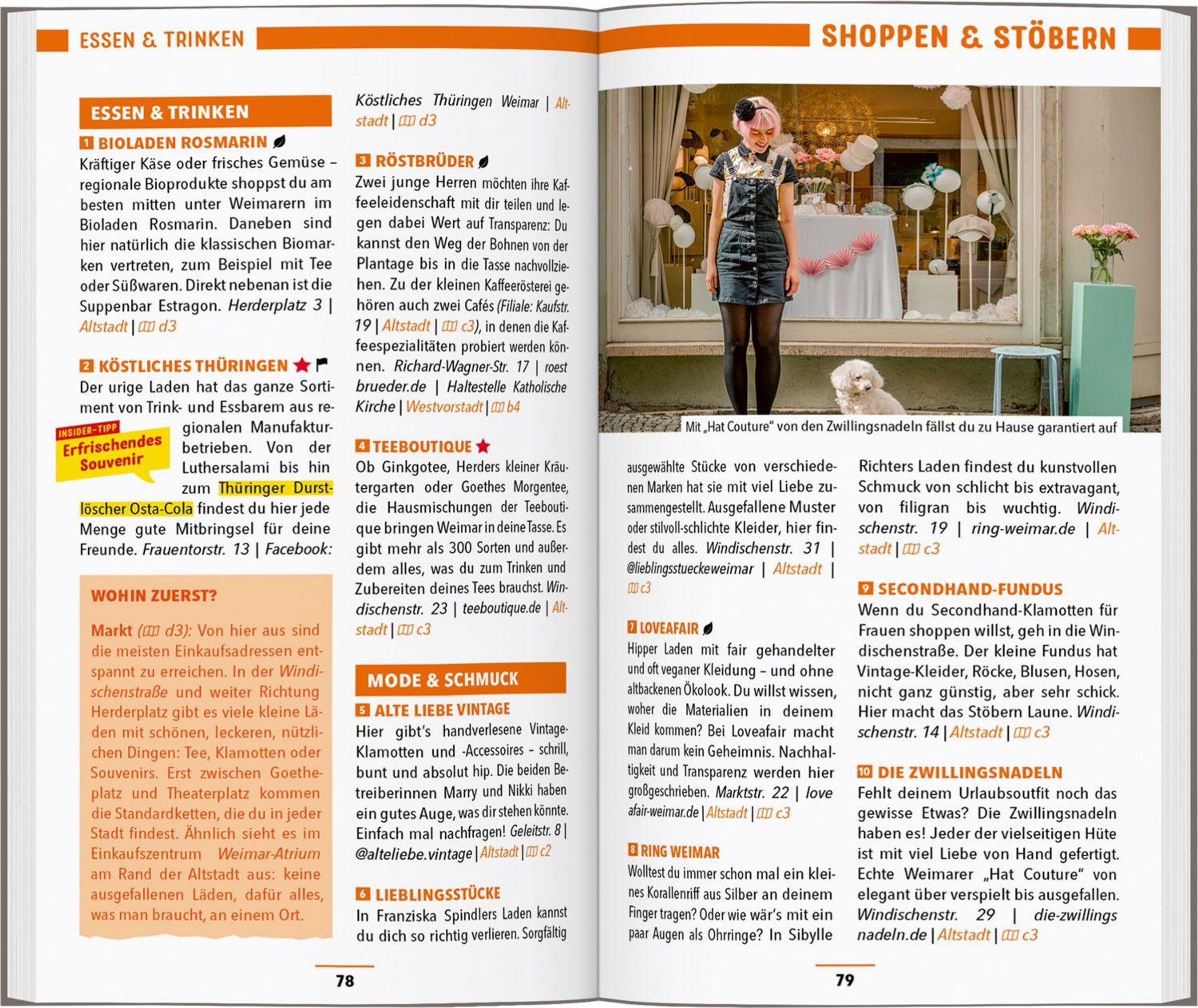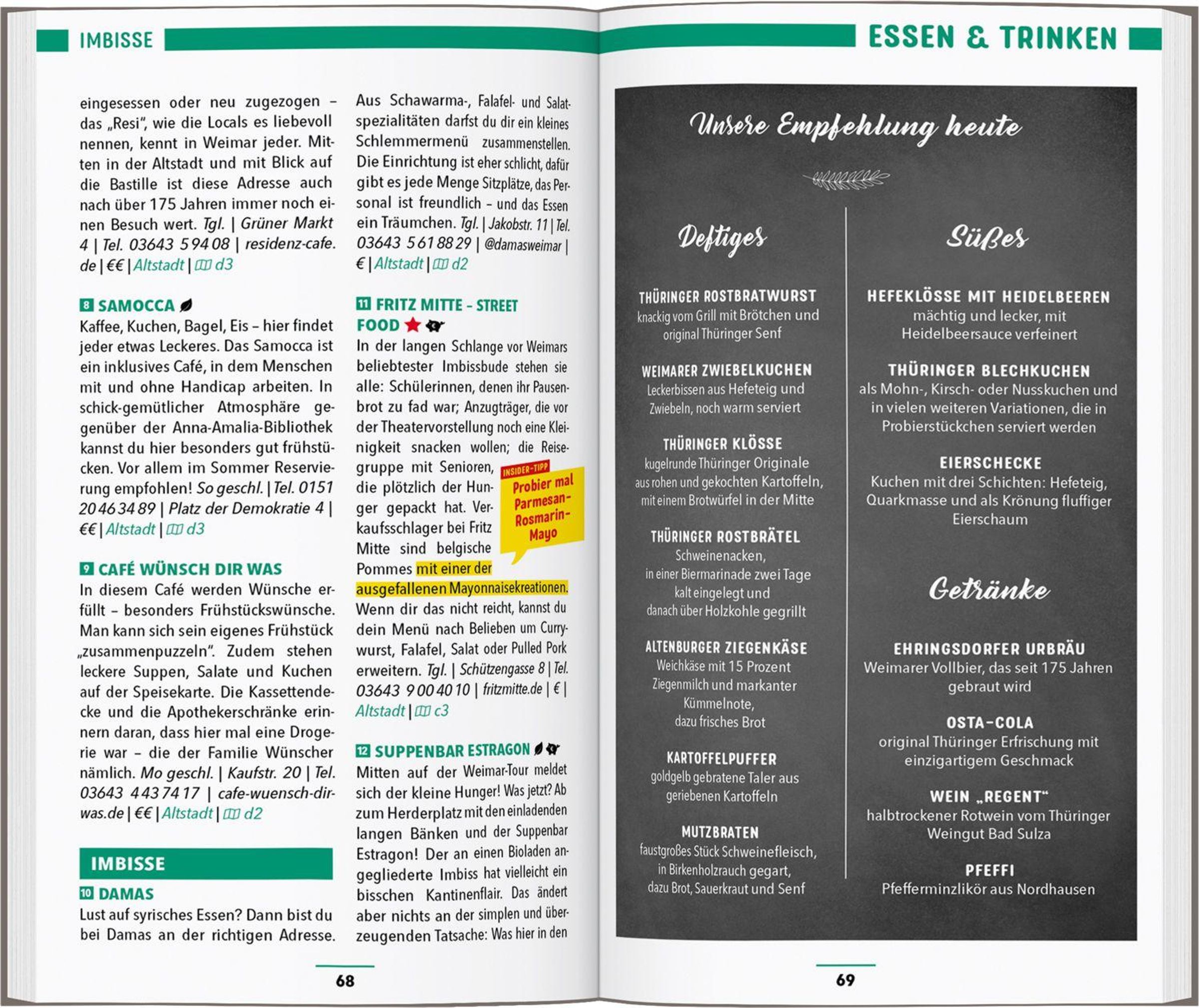 Verschlafenes Städtchen? Von wegen! Goethe und Schiller inmitten von Skatern, historische Fassaden mit modernster Projektionstechnik, Bach im Einklang mit Technosound - in Weimar treffen Gegensätze aufeinander. Ob Barhopping in der Altstadt, Sonnenbaden im historischen Park oder Bratwurst futtern auf dem Wochenmarkt: Mit dem MARCO POLO Reiseführer Weimar wird dein Städteurlaub zum Erlebnis!