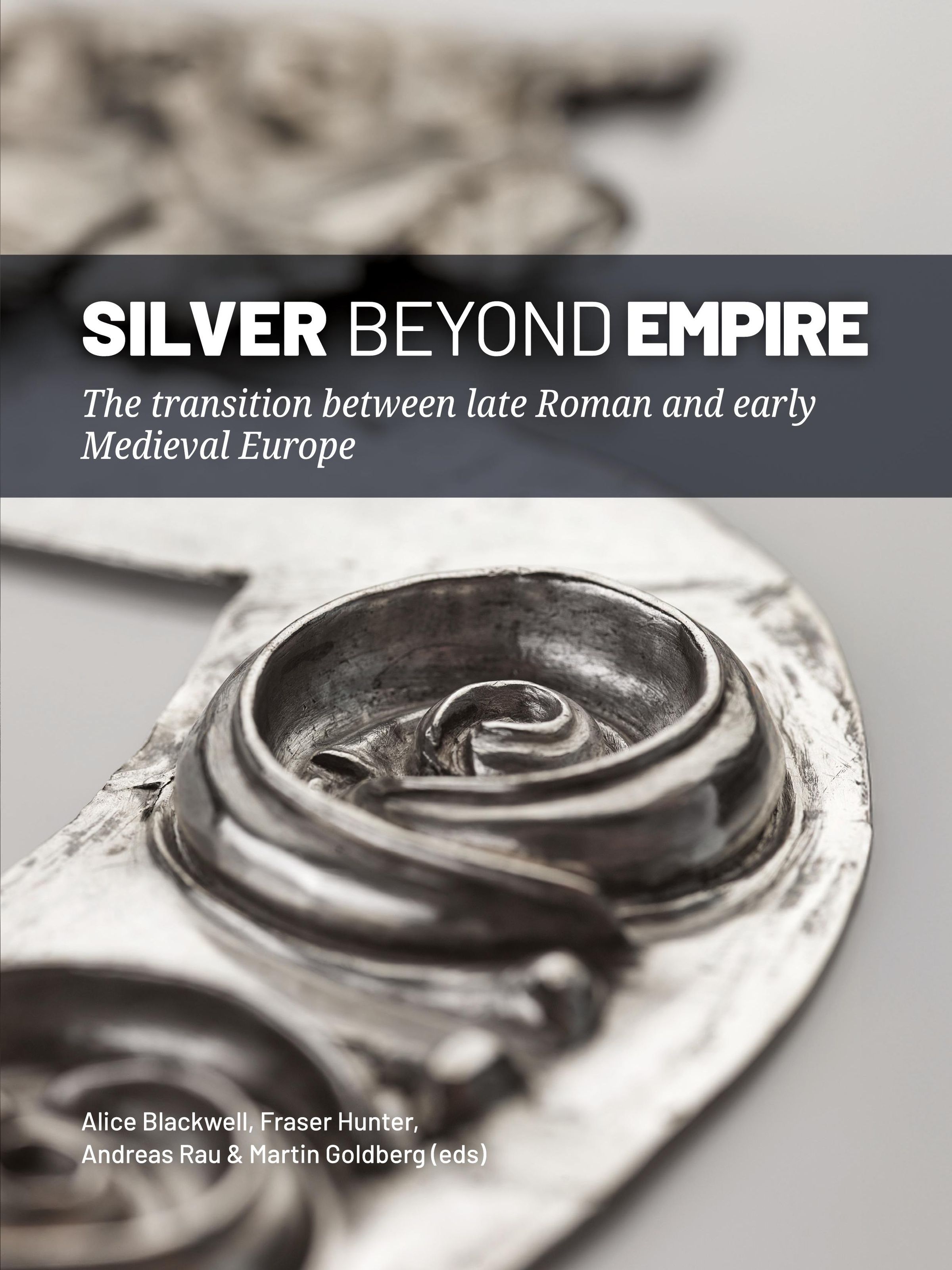 "SILVER BEYOND EMPIRE. The transition between late Roman and early Medieval Europe." Silbernes Ornament in Nahaufnahme., Buch