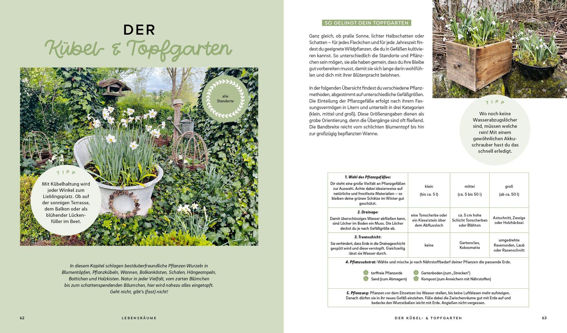 - Grundlagen- und Praxiswissen , um das Konzept Naturgarten zu verstehen und einen naturnahen Garten selbst anzulegen