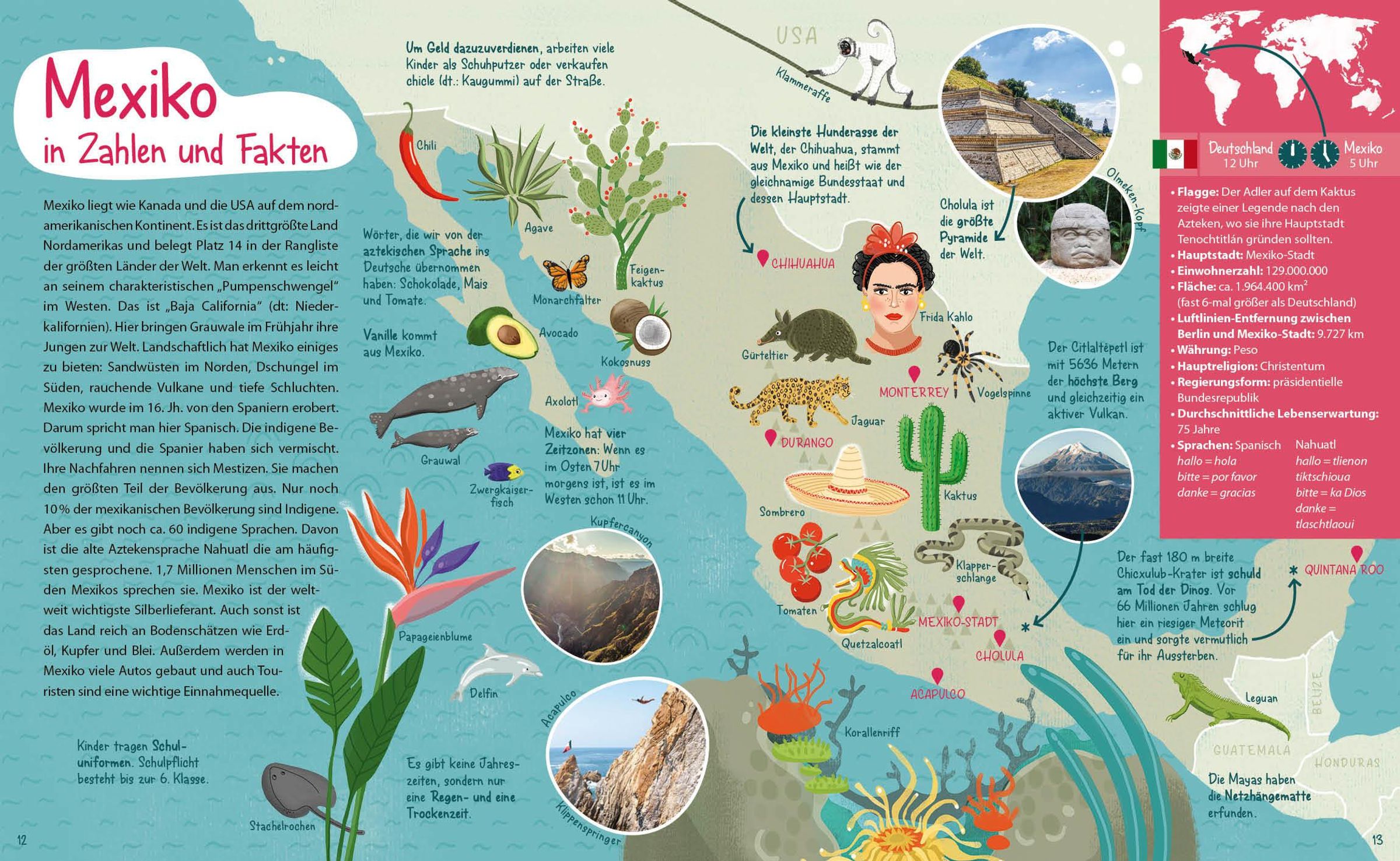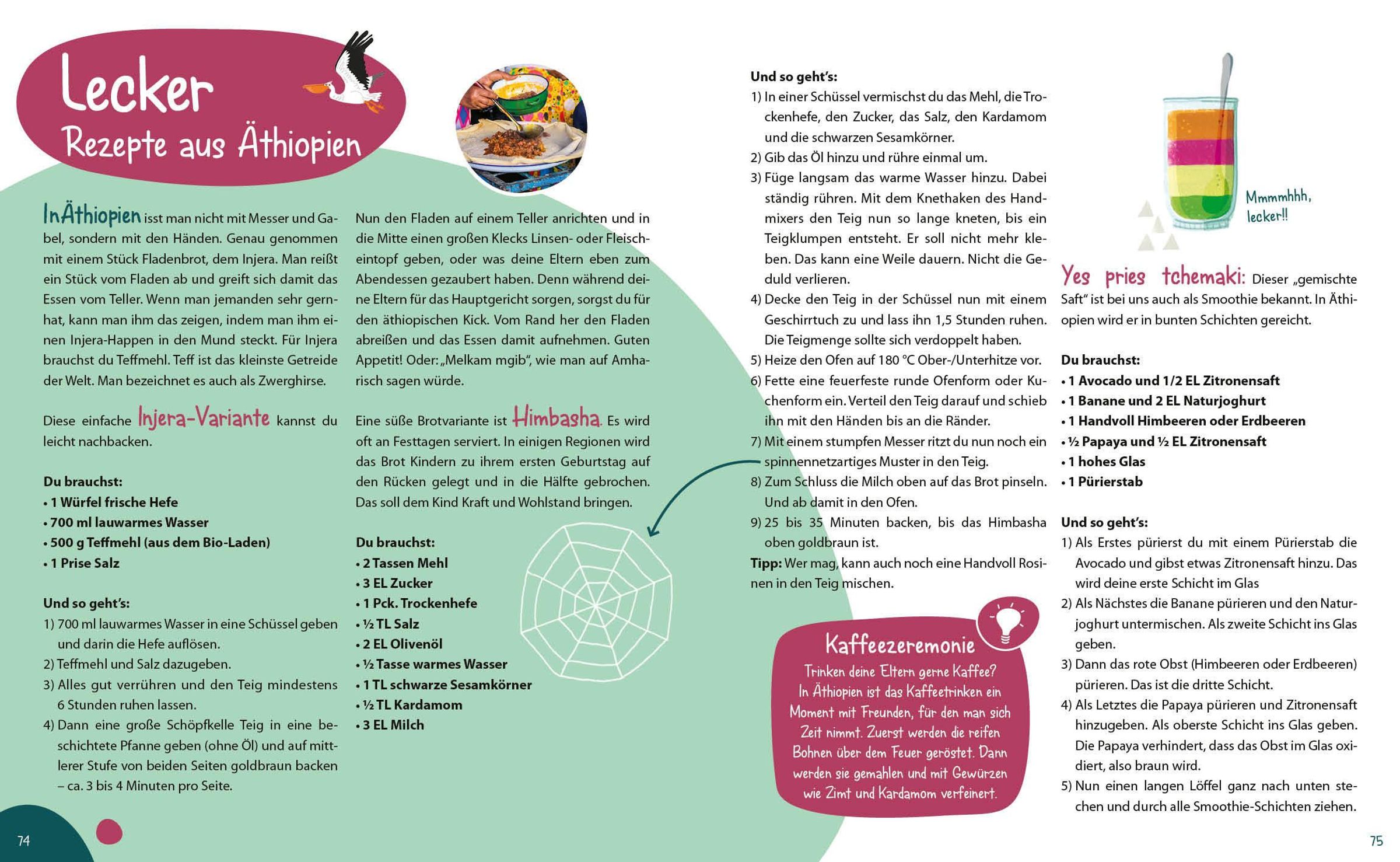 Auf Weltreise zu gehen war noch nie so einfach! Entdecke Mexiko, Peru, Großbritannien, Äthiopien, Japan und Australien mithilfe von Musik-, Film- und Lesetipps, Bastelanleitungen, Kochrezepten u. v.m.!
