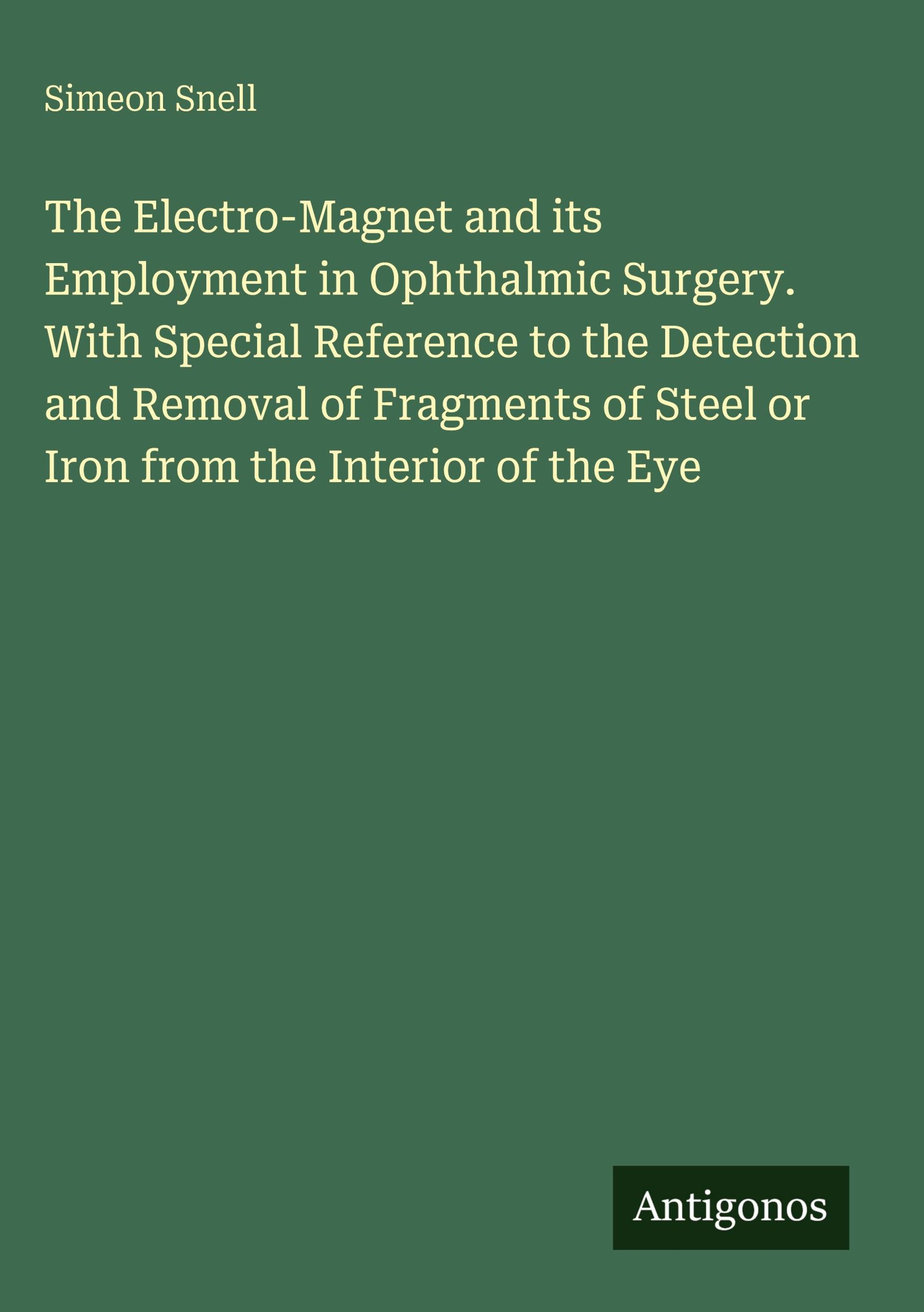 Simeon Snell: The Electro-Magnet and its Employment in Ophthalmic Surgery. With Special Reference to the..., Gebunden