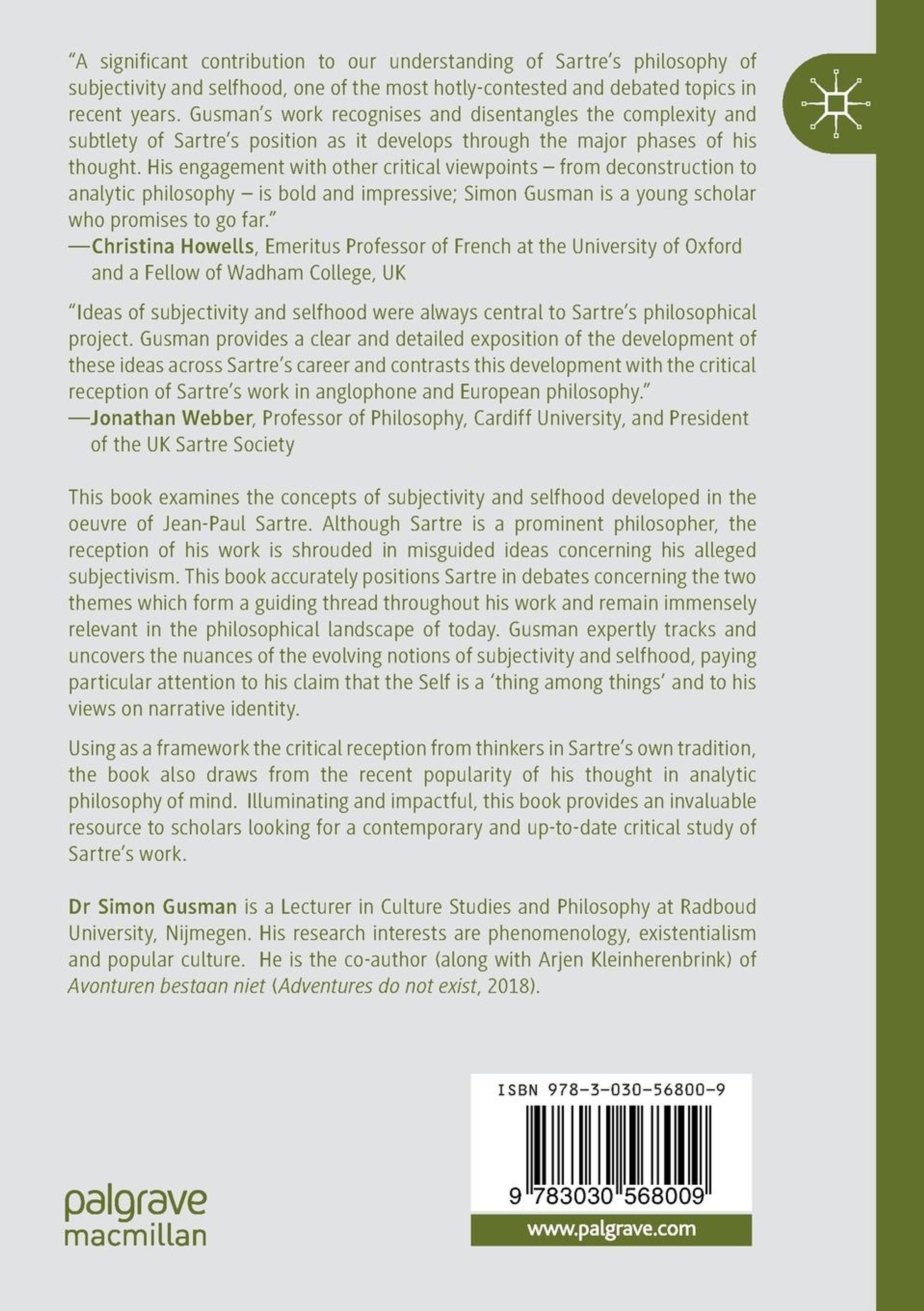 This book examines the concepts of subjectivity and selfhood developed in the oeuvre of Jean-Paul Sartre. Although Sartre is a prominent philosopher, the reception of his work is shrouded in misguided ideas concerning his alleged subjectivism. This book accurately positions Sartre in debates concerning the two themes which form a guiding thread throughout his work and remain immensely relevant in the philosophical landscape of today. Gusman expertly tracks and uncovers the nuances of the evolving notions of subjectivity and selfhood, paying particular attention to his claim that the Self is a ¿thing among things¿ and to his views on narrative identity. Using as a framework the critical reception from thinkers in Sartre¿s own tradition, the book also draws from the recent popularity of his thought in analytic philosophy of mind. Illuminating and impactful, this book provides an invaluable resource to scholars looking for a contemporary and up-to-date critical study of Sartre¿s work.