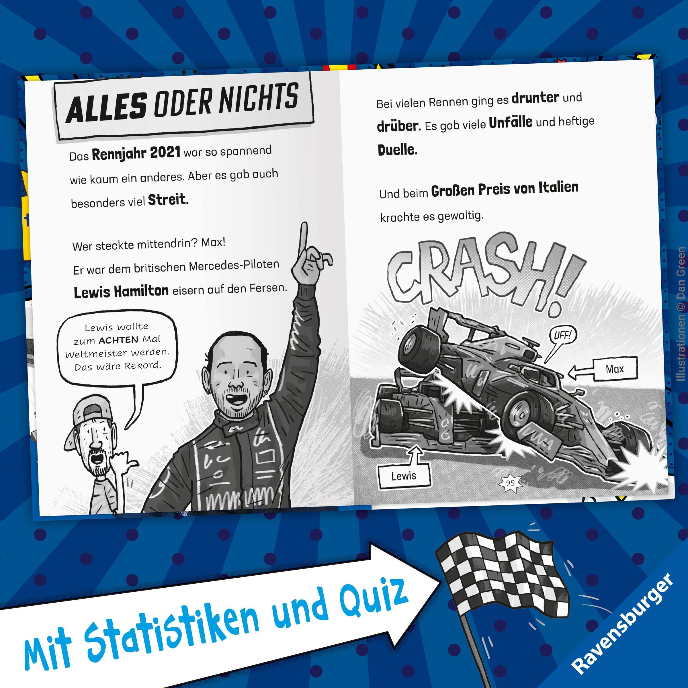Das perfekte Rennsport-Geschenk für Jungen und Mädchen, die gar nicht genug Wissen über Verstappen sammeln können. In einer Geschichte lesen sie alles über seinen Weg vom Kart fahrenden Jungen bis zum Formel-1-Weltmeister: Wollte er immer Profi-Rennfahrer werden? Bei welchen Rennställen war er? Und was waren seine wichtigsten Rennen und Rekorde? In kindgerechten Statistiken können sie Spannendes über ihr Rennfahr-Idol lernen und sich im Verstappen-Quiz testen. So geht Lesenlernen mit Tempo!