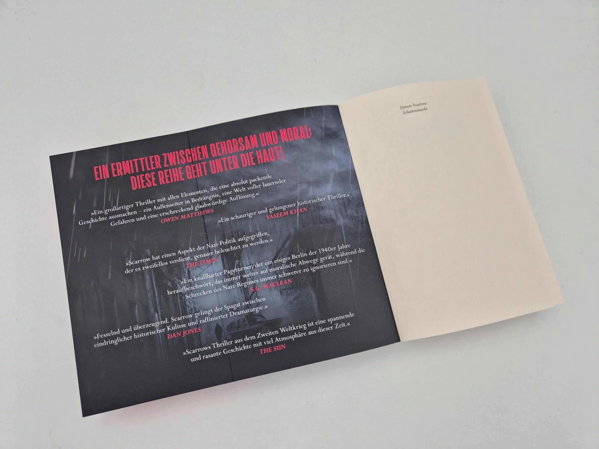 'Ein knallharter Pageturner, der ein eisiges Berlin der 1940er Jahre heraufbeschwört, das immer weiter auf moralische Abwege gerät, während die Schrecken des Nazi-Regimes immer schwerer zu ignorieren sind.' S. G. MacLean